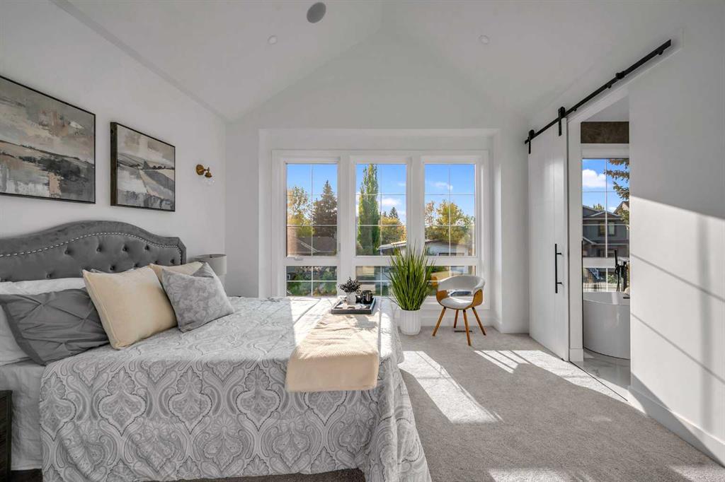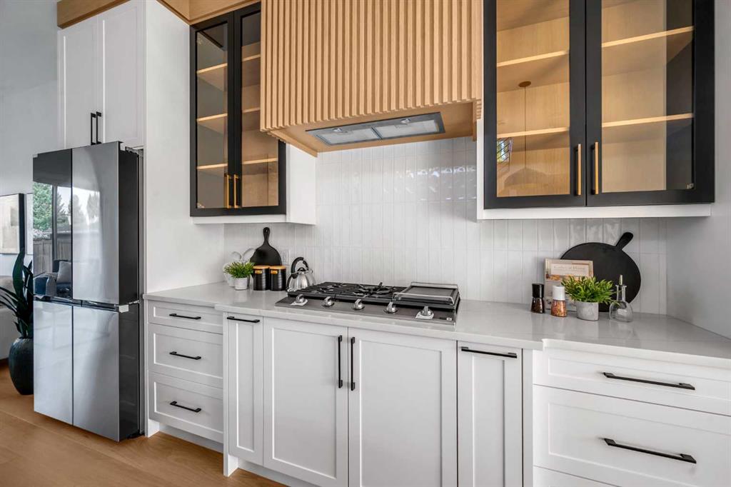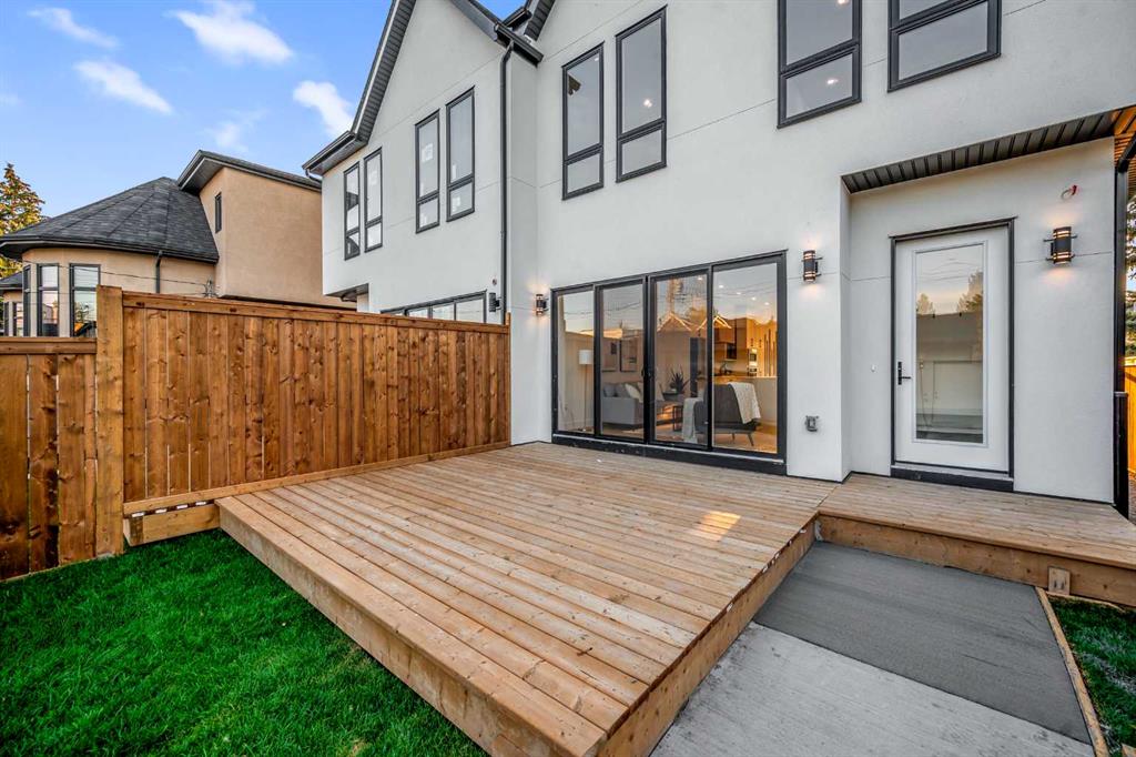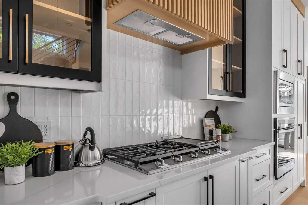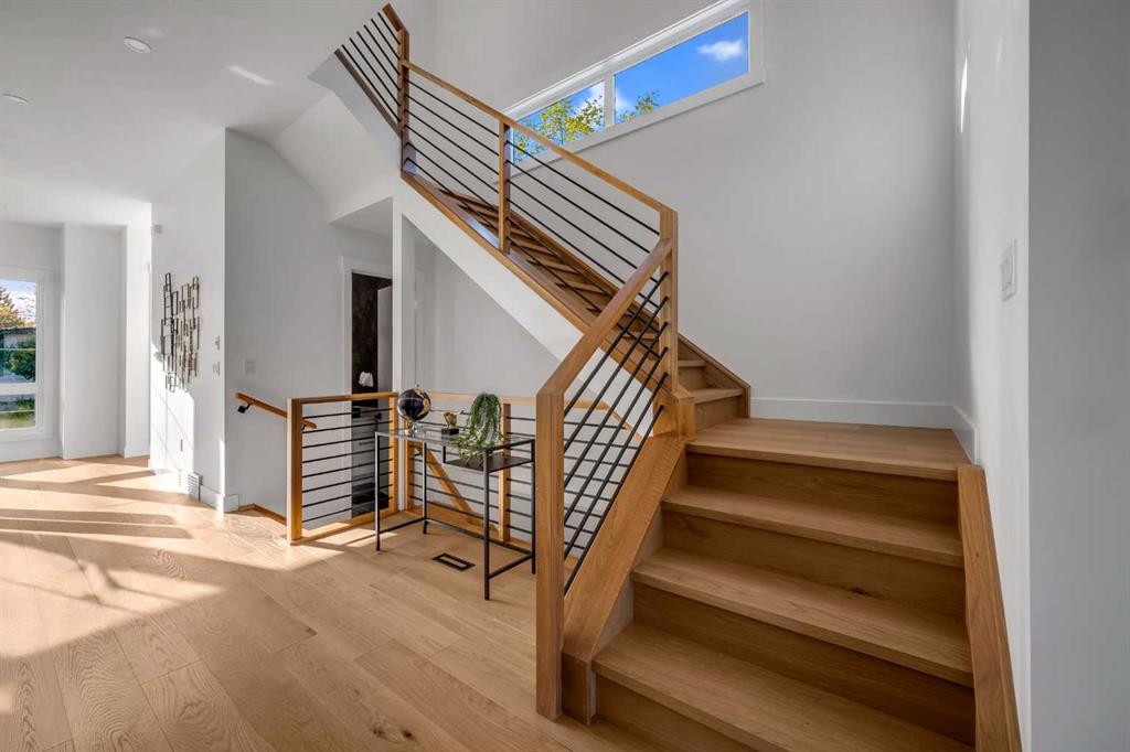 BRAND NEW | 4 BEDS | GYM | BAR | VAULTED CEILINGS THROUGHOUT | EV-POWER IN GARAGE | Only 1 Side remaining – Welcome to this stunning brand-new home in the heart of Highland Park, one of Calgary’s most sought-after neighborhoods. Ideally located near coffee shops, schools, major amenities, and just minutes from downtown, this residence blends modern luxury with everyday convenience. From the moment you arrive, the brick and stucco exterior with colonial-style windows sets an immaculate modern farmhouse tone. Inside, every detail radiates sophistication — from the upscale finishes, to the light-filled open-concept layout designed for both beauty and practicality. The main floor begins with a spacious dining area accented by a feature wall, leading into the gourmet chef’s kitchen. Here you’ll find a striking mix of paint-grade and oak cabinetry, floor-to-ceiling storage, stainless steel appliances, gas cooktop, under-cabinet lighting, and built-in ceiling speakers. The showpiece of the space is the 13-foot waterfall quartz island — perfect for entertaining or casual meals. Adjacent is a cozy living area anchored by a gas fireplace with tiled stone surround, opening to a 14×14 wood deck through a sleek glass wall system. With exterior speaker wiring, this deck is the ideal spot for BBQs, morning coffee, or summer evenings with friends. Additional main floor highlights include a walk-in pantry, custom mudroom, and an elegant powder room. Upstairs, a dramatic open-to-below design with vaulted ceilings makes a grand impression. Every bedroom on this level features a vaulted ceiling. The primary suite overlooks the front yard with sunset views, and boasts an expansive walk-in closet. The spa-inspired ensuite offers in-floor heating, a freestanding tub, dual vanity with custom mirrors, a glass shower with steamer, and exquisite finishes. Two additional bedrooms, a 4-pc bath, and a laundry room with built-in cabinetry complete the upper level. The fully developed basement is designed for both relaxation and recreation, featuring a designer wet bar, a large rec room with built-in TV unit and ceiling speakers, plus a private gym with rubber flooring and mirrors. A fourth bedroom with walk-in closet and a full bath add extra flexibility. Outside, a fully fenced backyard with generous lawn space offers room for pets, play, and summer gatherings. The double garage, roughed-in for EV charging, provides secure parking and storage. This home delivers the perfect blend of elegance, comfort, and functionality — all in one of Calgary’s most desirable communities. Contact your favorite realtor today to schedule a showing!