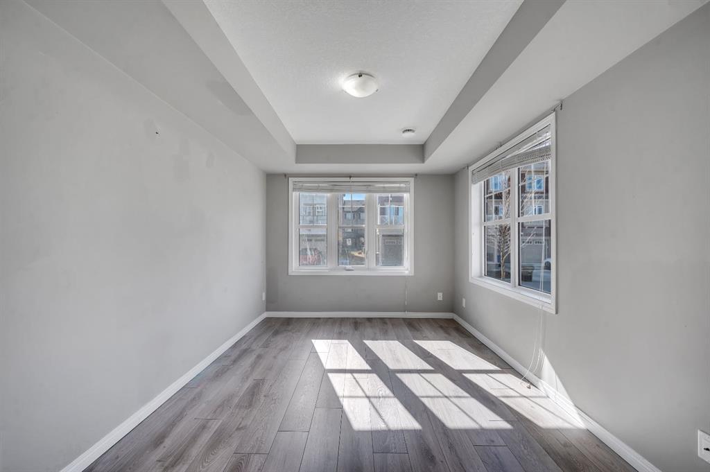 Welcome to 341 Cityscape Court NE, Calgary – a stunning end-unit townhouse that perfectly combines modern style, functional design, and an unbeatable location directly across from green space in the vibrant community of Cityscape. Offering over 1,500 sq. ft. of developed living space with 3 bedrooms and 2.5 bathrooms, this home is an ideal choice for first-time buyers, young families, or investors. The main living area is bright and open, designed for both entertaining and everyday comfort. The sleek kitchen features stainless steel appliances, quartz countertops, and ample cabinetry, flowing seamlessly into the dining area and spacious family room, with a convenient 2-piece bathroom completing this level. Upstairs, the primary bedroom offers a large walk-in closet and a private 4-piece ensuite, while two additional bedrooms, a full bathroom, and upper-floor laundry provide practicality and ease for family living. As an end unit, this home enjoys extra windows, abundant natural light, and enhanced privacy. The attached single garage with driveway allows for parking for two vehicles, while the balcony provides the perfect spot to relax and enjoy your morning coffee or evening breeze. Families will love the green space and playground just steps away, while the low monthly condo fee of $367 includes snow removal, landscaping, insurance, and more, ensuring stress-free living. With shopping, parks, schools, transit, and major roadways all nearby, Cityscape is one of Calgary NE’s most sought-after neighborhoods. Move-in ready and beautifully maintained, this home is waiting for you—schedule your private showing today!