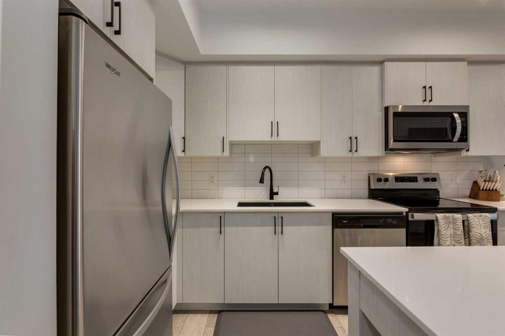 Welcome home to this beautifully upgraded top floor condo; 2 bedrooms, 2 bathrooms, 1 titled underground parking with one assigned storage, offering the perfect blend of modern style, functionality and comfort in one of Calgary’s most desirable northwest communities. Step inside to a bright, open concept layout featuring luxury vinyl plank flooring and an abundance of natural light throughout. The upgraded kitchen impresses with quartz countertops, full height cabinetry, stainless steel appliances and a movable island for added flexibility. It flows seamlessly into the living area, creating an inviting space for both everyday living and entertaining. Enjoy sunsets from your private balcony, complete with a gas line for your BBQ. The spacious primary bedroom features a sizeable closet and a private ensuite. A second bedroom offers versatility for a home office, gym, or guest space, while in-suite laundry adds everyday convenience. Additional highlights include a titled parking stall, assigned storage locker, secure building access and well maintained common areas. Located in the vibrant community of Sage Hill, you’re just minutes from shops, restaurants, grocery stores, fitness studios, and scenic walking paths, with quick access to Stoney Trail and Shaganappi Trail for an easy commute! Book your private showing today.