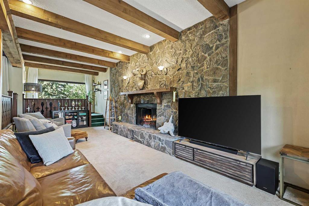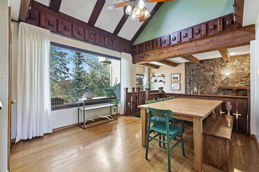 Welcome to this charming 1.5-storey detached home, with 1822 sq ft above grade, in the highly sought-after community of Highland Park, the perfect place for families who want the best of both worlds: peaceful living and easy access to downtown being in the central location that it is. Set on a spacious 50’ x 119’ lot, this property offers room to grow, play, and create lasting memories, with an option down the road for redevelopment. From the moment you step inside, you’ll be greeted by beautiful hand-crafted woodwork, soaring vaulted ceilings, and exposed beams that give the home a warm and inviting feel. The open-concept living room, featuring a stunning wood-burning fireplace framed by a stone wall, is the perfect gathering spot for cozy family nights or relaxed weekends at home. Large west windows fill the main floor space with natural light, making it bright and cheerful throughout the day. On the main floor, you’ll find two comfortable bedrooms with one being used as an office right now, 3 piece bath, formal dining room, and comfy sitting nook. The spacious kitchen offers ample cabinetry and counter space, ready for family meals and everyday living. Upstairs, the primary suite is a true retreat with a private balcony, walk-in closet, and 4 piece ensuite bathroom, what a peaceful spot to unwind at the end of the day. Another upper-level bedroom provides great flexibility for kids or guests. The fully finished basement expands your living space with an additional bedroom, full bath, and a large recreation room featuring a built-in bar, great for movie nights, playtime, or entertaining friends. Step outside to enjoy a private backyard oasis complete with a covered deck, patio, and a double detached garage. It’s the ideal setup for BBQs, kids’ playtime, and family gatherings all year round. The front driveway is also super convenient for someone who wants to park out front, use for a trailer, or ease of use for your visitors. Located just seconds from Centre Street with direct transit access to downtown, this home is ideal for parents working in the city. With schools, parks, and shopping nearby, this is a truly special opportunity to settle into a family-friendly community with charm, convenience, and character.