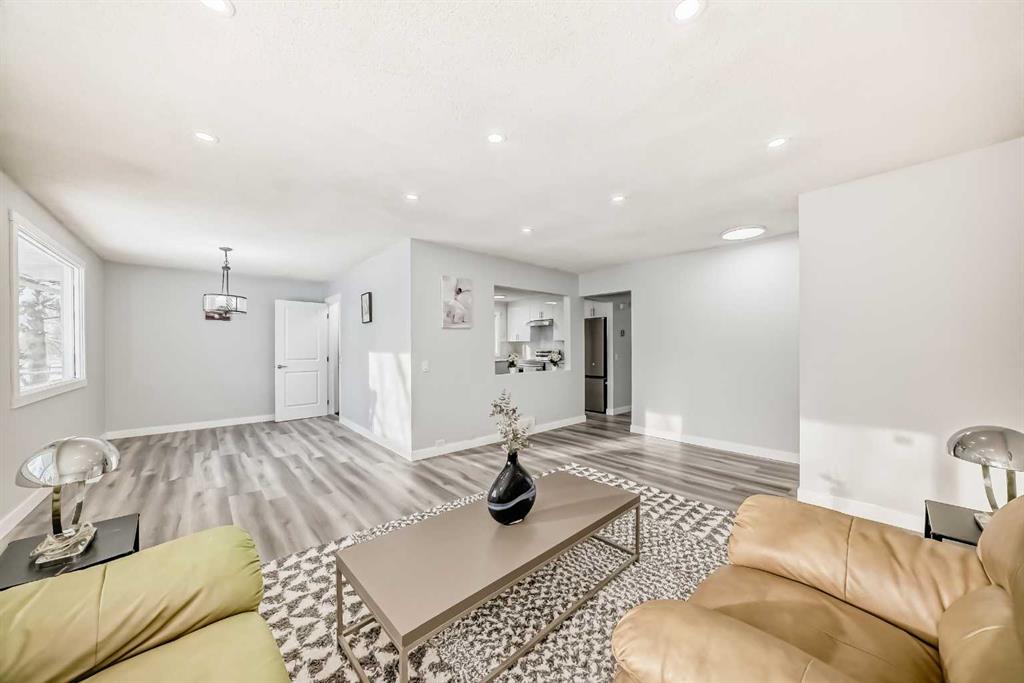 Welcome to this beautifully renovated and thoughtfully updated home, perfectly situated in the family-friendly community of Dover. Offering just shy of 1,100 sq. ft. on the main level and a total of 5 bedrooms and 2 full bathrooms, this property delivers exceptional comfort, functionality, and versatility for homeowners and investors alike. Step inside to a bright and inviting living room, where large windows fill the space with natural light and highlight the modern LVP flooring that flows seamlessly throughout the main level. The adjoining dining area provides an ideal space for family dinners or hosting guests, with easy access to the fully updated kitchen. Offering an attractive blend of style and efficiency, the kitchen features sleek, high-gloss cabinetry, quartz countertops, and stainless steel appliances, creating a fresh, contemporary look that will appeal to any modern homeowner or tenant. The main level is complete with three well-sized bedrooms, a beautifully renovated full bathroom, and the convenience of an in-suite stacked washer and dryer—making this space entirely self-sufficient. A separate side entry leads to a spacious, self-contained illegal suite, providing excellent flexibility for extended family living or potential rental income. This lower-level suite includes two additional bedrooms, a full bathroom, a generous family room ideal for relaxing or entertaining, and a well-appointed kitchen. With its own dedicated laundry, the suite offers complete independence and privacy. Located in a prime area of Dover, this home offers easy access to major routes including 36 Street, 26 Street, 17 Avenue, and Peigan Trail—making commuting simple and convenient. Residents will appreciate being just minutes from shopping centers, transit options, schools, playgrounds, and numerous community amenities. Whether you’re looking for a move-in-ready family home or a savvy investment property with excellent rental potential, this beautifully renovated home checks all the boxes. Don’t miss the opportunity to make this exceptional property yours!