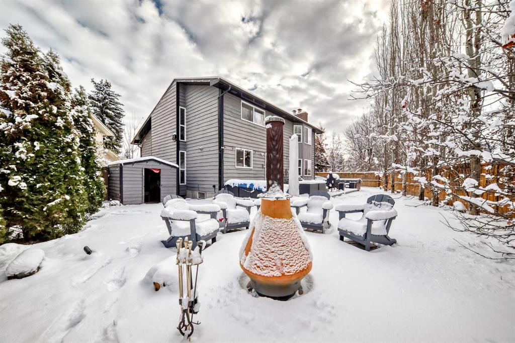 This exceptional updated 5 bed/3.5 bath + office two storey home, in the highly desirable & mature Deer Run Estates is a must see! Located on a quiet cul de sac, the home sits on on a huge pie lot, and perfect for a family at any stage of life. Walking up to the home, you’ll appreciate the flagstone walkway, Gemstone lighting, widened driveway for plenty of parking & new overhead garage door on the heated & insulated double attached garage. The first things to catch your eye upon entry is the soaring ceilings, full wall of windows & grand staircase with rock feature wall, gorgeous modern chandeliers and engineered hardwood & luxury vinyl plank flooring. The generous open concept living & dining spaces with wet bar is ideal for hosting large gatherings with family & friends. The fully renovated kitchen features modern two tone cabinetry, all new appliances with an induction range & convection oven (but also has a gas connection in behind), quartz counters and breakfast nook with new lighting. The sunken family room features a large bay window & wood burning fireplace with mantle and built in bookcases on either side, a great spot to enjoy a family movie night. A main floor office/bedroom, laundry area, updated powder room & mud room area complete the main floor. Upstairs you’ll find a large bonus area, perfect for the teens in your life to relax. The serene primary suite features a generous sleeping area with large bay window overlooking the private backyard, and good sized walk in closet. The fully renovated spa-like ensuite features a double vanity w/quartz counters, huge glass steam shower, soaker tub to unwind in at the end of the day, in-floor heat and loads of additional cabinetry. Two large secondary bedrooms & 5 pc main bath complete the upper level. In the lower level you’ll find an illegal suite with full kitchen, large bedroom, games area & large recreation area with a second wood burning fireplace flanked by built ins, plus a huge 4 pc bath. Off the kitchen the west facing backyard oasis is calling! There you’ll find a expansive composite deck with plenty of space for dining al fresco and large lounging area. The large pie shaped yard features newer fencing, artificial turf for kids & fur babies to play, a large flagstone fire pit area (matching with the front flagstone work), landscape lighting, extensive landscaping, drip line irrigation in the gardens, gas line connectors on two sides of the home and two storage sheds. Ideally located a quick walk to Fish Creek Park Bow Valley Ranch & the Bow River, Deer Run Community Centre & tennis courts, and a playground just a block away. Additionally, the home is located close to Deer Valley Marketplace with it’s updated shops, restaurants/pubs, Co Op grocery, medical & dental services, fitness center, family fun center & schools/daycares make this the perfect family community. Commuting is a breeze with easy access to Bow Bottom Trail and Deerfoot Trail. Book your showing today!
