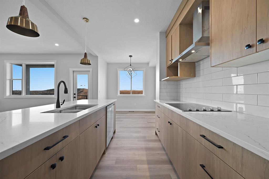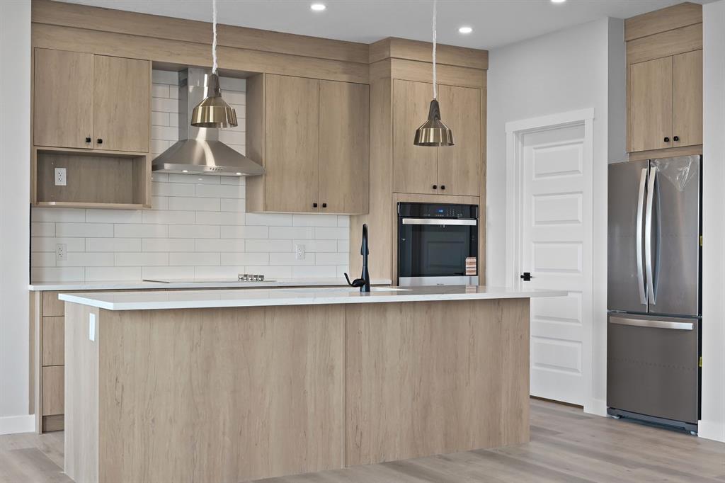 The home also offers a side entrance with income potential, and the basement includes rough-ins to easily add two more bedrooms in the future. Thoughtful touches like black Moen fixtures throughout elevate the home’s luxurious feel. The triple attached garage comes equipped with gas and electrical hookups, ready for heat — perfect for Alberta winters.