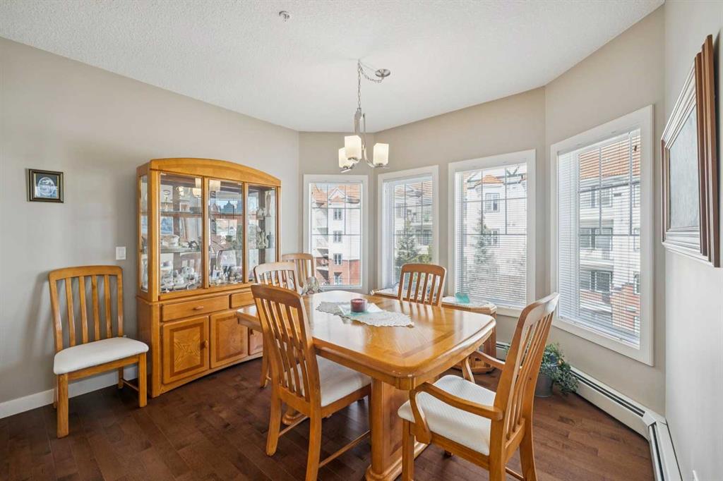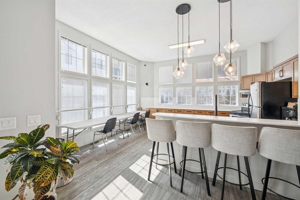 Welcome to this meticulously maintained third-floor end unit offering 962 sq ft of bright and functional living space with 2 bedrooms, 2 full bathrooms and title parking in a well-managed complex. Facing into the quiet centre clubhouse and courtyard area, this home provides a peaceful setting with minimal noise—perfect for comfortable everyday living. Pride of ownership is evident throughout, with the unit showing exceptionally well and having been thoughtfully cared for by the current owner. The open-concept layout is both practical and inviting, seamlessly connecting the kitchen, dining, and living areas—ideal for entertaining or relaxing at home. The spacious kitchen is a true focal point, featuring a large centre island, ample cabinetry, and newer appliances, including a recently upgraded SS refrigerator and stacked washer and dryer near the tiled foyer. Expansive windows throughout the unit allow for an abundance of natural light, enhancing the bright and airy atmosphere with beautiful maple engineered hardwood floors. The primary bedroom offers a private retreat with incredibly high ceilings, a walk-in closet and a 3-piece ensuite. The second bedroom is generously sized and conveniently located near the 4-piece bathroom, making it perfect for guests, a home office, or shared living. Additional highlights include two built-in wall air conditioning units for year-round comfort, a large private balcony overlooking the beautifully maintained clubhouse and courtyard area with a new Phantom Retractable Screen, a titled underground parking stall, separate titled storage locker, and bike storage. This well-managed complex offers excellent amenities within the clubhouse, including a fitness centre with new equipment, resident lounge with pool table, darts, TV, a full kitchen, extra seating, washrooms, and ample visitor parking. Ideally located with easy access to major roadways, shopping, YMCA, restaurants, and all essential services. A quiet, exceptionally well-kept massive end unit in a desirable location—this is one you won’t want to miss.