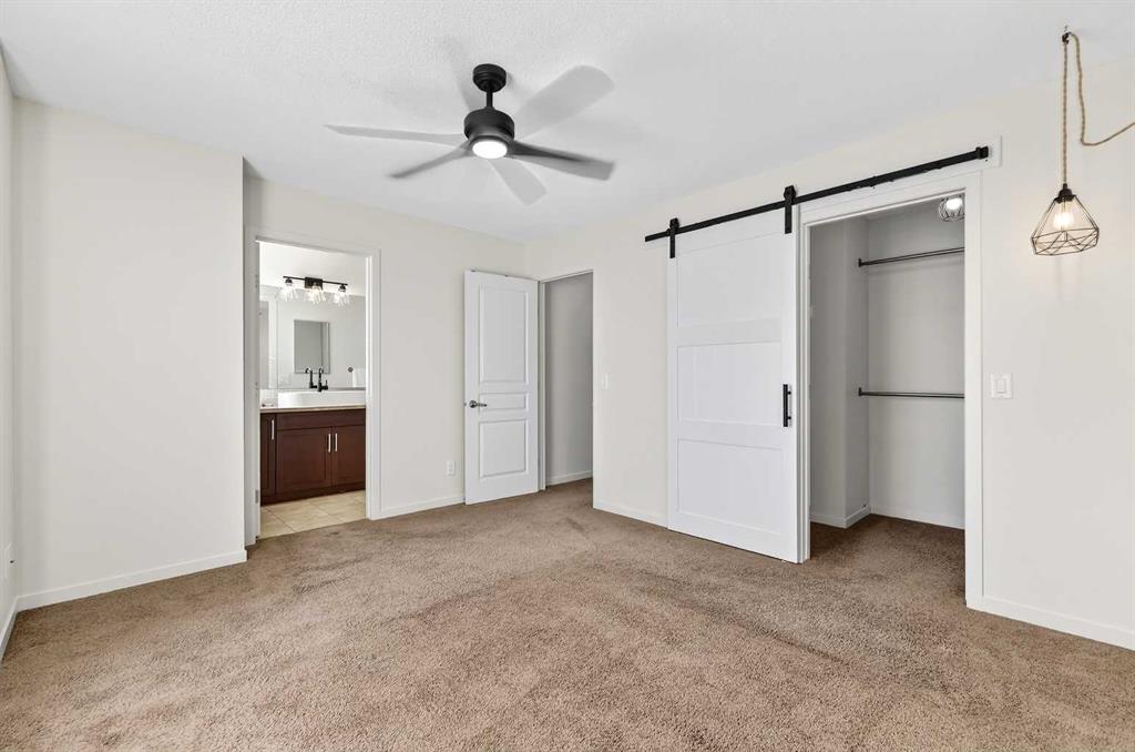 Upstairs offers a spacious primary bedroom with walk-in closet and 4-piece ensuite , plus two additional bedrooms and another 4-piece bathroom .