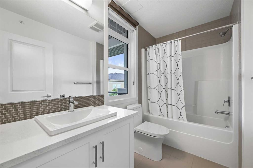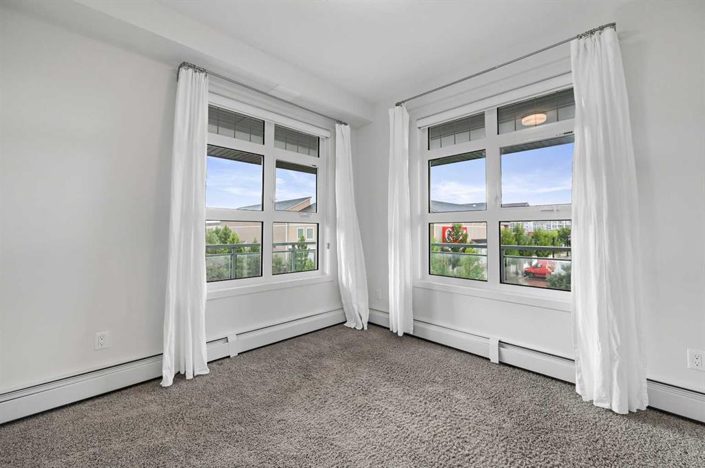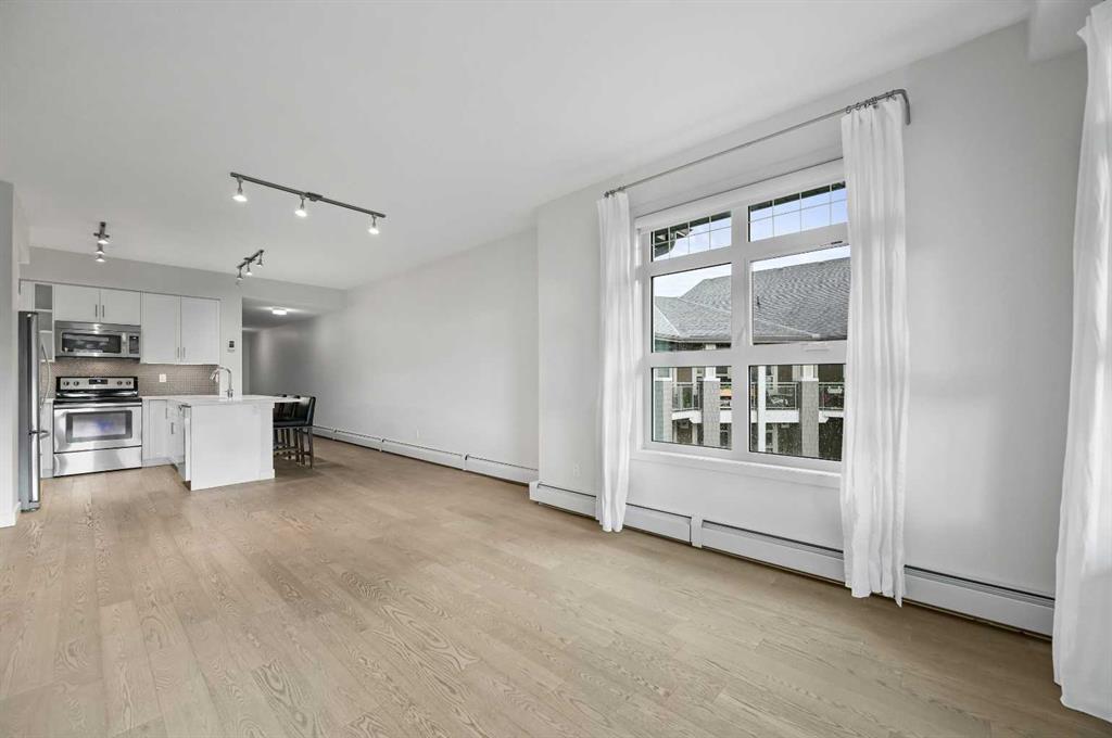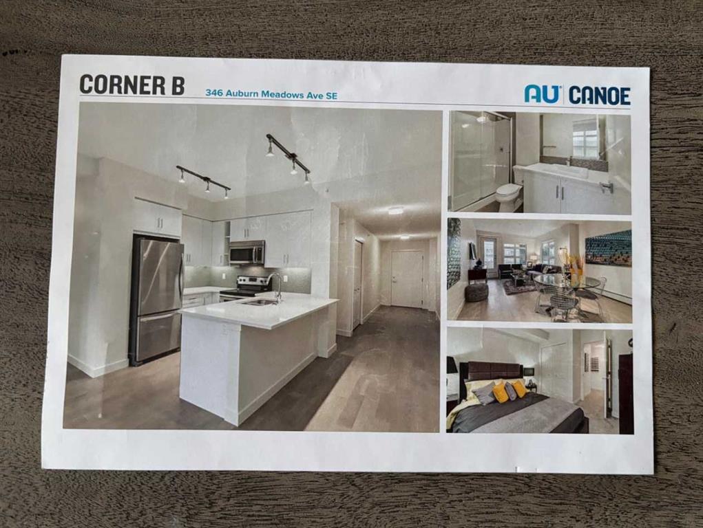 ** NEW PRICE ** Canoe at Auburn Bay – Top Floor Corner Model with Courtyard Views – Quick Possession!! Unbelievable VALUE & DESIGN! The superb condo offers two bedrooms, two bathrooms, a titled indoor parking stall, extra tall windows, a 190 SF covered balcony, and high 9′ ceilings. Value Added features – City of Calgary the 2025 Property Assessment is $435,000 … Check and Compare; 942 RMS sq. ft. of luxurious living space. Loaded with extras… Luxury wide plank engineered flooring, dual pane Low-E windows, modern white painted casings, doors & baseboards, white decora light switches, convenient laundry with storage & stacked washer/dryer. Whirlpool Stainless steel appliance package: fridge with freezer below, OTR microwave, smooth top electric cooktop, and quiet Energy Star-rated tall tub dishwasher. Upgraded Kitchen cabinets with tall upper doors + soft-close drawers + extra floor cabinets + moldings with under-cabinet lighting, quartz island countertops, undermount dual-basin stainless steel sink, full-height glass tile backsplash, pull-out kitchen faucet, dramatic peninsula island with flush eating bar, and room to sit 4. BONUS features: supersized front foyer and private entry! Auburn Bay, a lake lifestyle amenity beyond compare – Central Beach site is the home of the community’s grand beach area, where residents have exclusive access to sandy beaches, a splash park, tennis courts, play equipment, a fishing pier and non-motorized marina, indoor and outdoor fitness equipment, barbeque pits, a hockey rink and more. The Beach area hosts various activities, including educational and recreational programs, meetings, and private functions. Purposefully designed as the focal point for the community, the Beach area also includes a dedicated skate room and multiple meeting rooms; as a gathering place that will be beloved for generations, the lake is a place of shared laughter and joy, where neighbors gather year-round to enjoy the best of four-season lake living. Call your friendly REALTOR(R) to book a viewing!