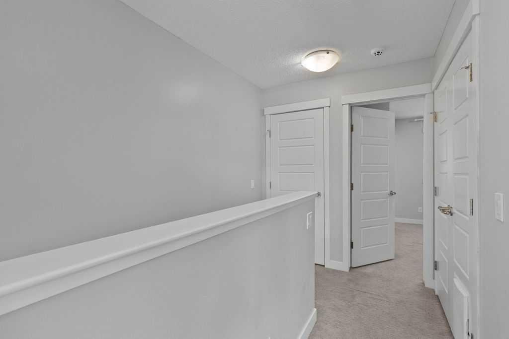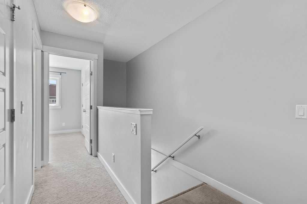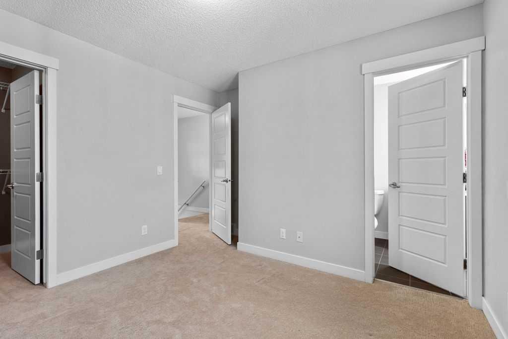 Discover refined living in this impeccably maintained townhouse nestled in the vibrant and well-loved community of Coventry Station. Bathed in natural light thanks to expansive windows and an open-concept layout, this home offers an inviting and spacious atmosphere from the moment you enter. The main level exudes sophistication, showcasing rich hardwood floors and luxurious granite countertops in both the kitchen and bathrooms. The gourmet kitchen is thoughtfully appointed with sleek dark cabinetry, gleaming stainless steel appliances, and ample space for culinary creations or entertaining guests. Just off the kitchen, step onto a charming deck that overlooks back green space. Upstairs, retreat to the generously sized primary suite, complete with a 3-piece ensuite and a walk-in closet. A second bedroom also offers a walk-in closet and enjoys access to its own full 4-piece bath. The upper floor is completed by a dedicated laundry area and an additional storage closet, ensuring functionality blends seamlessly with comfort. The lower level with extra storage space—as well as a single attached garage for added convenience. Perfectly positioned with quick access to both Deerfoot and Stoney Trails, and just minutes from a wealth of shopping, dining, and amenities, this home truly offers the best of comfort, convenience, and character. Don’t miss the opportunity to make this exceptional property your own. New roof, new sidings and new windows.