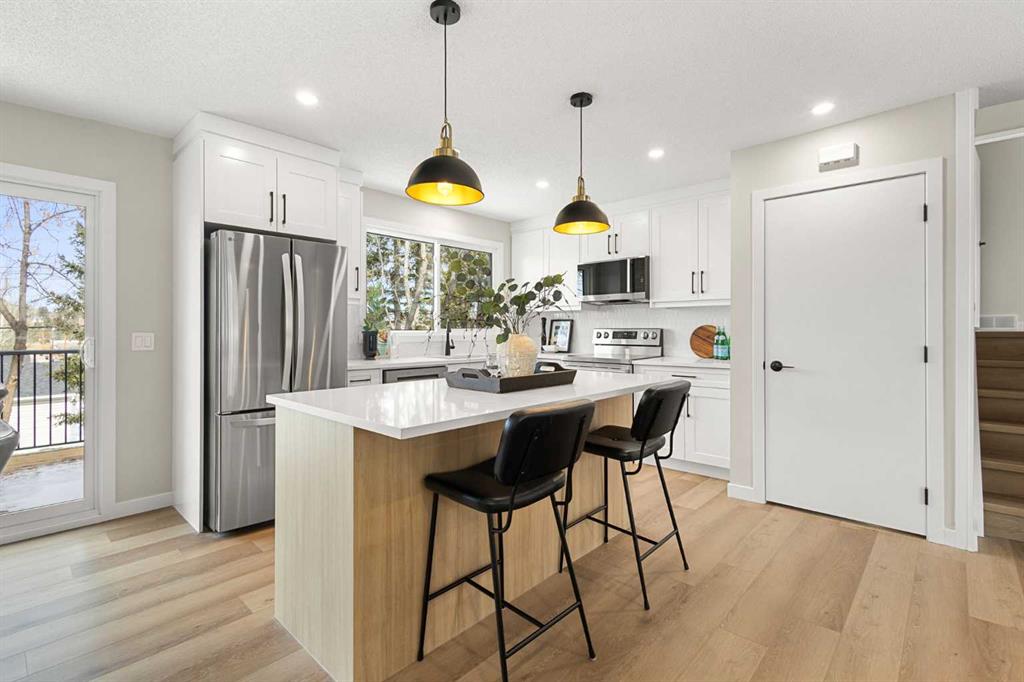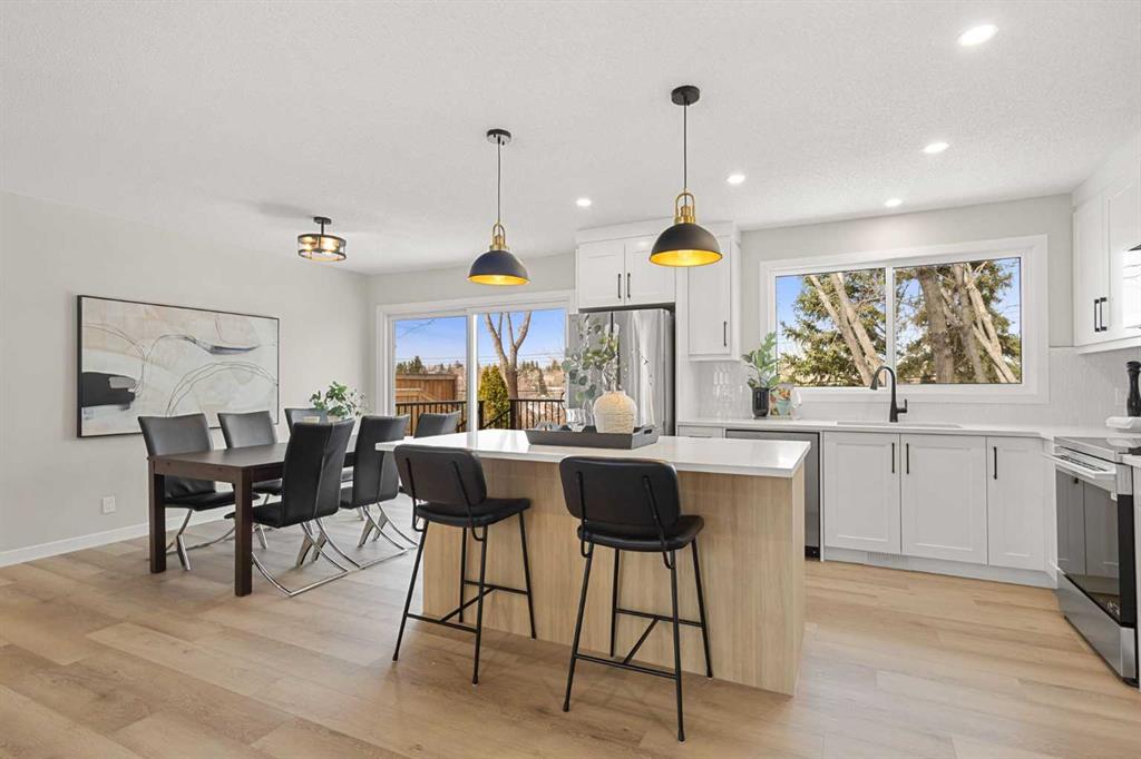 The main level features a bright, open-concept layout with a welcoming foyer highlighted by a stylish feature wall. The spacious living room is filled with natural light and overlooks the front yard. The modern kitchen offers ample cabinetry, a central island, and a full stainless steel appliance package. The dining area opens onto a large new deck and a generous backyard—ideal for entertaining. The oversized backyard is a blank canvas ready for your vision—create your dream garden, outdoor retreat, or even build a large garage to suit your needs.