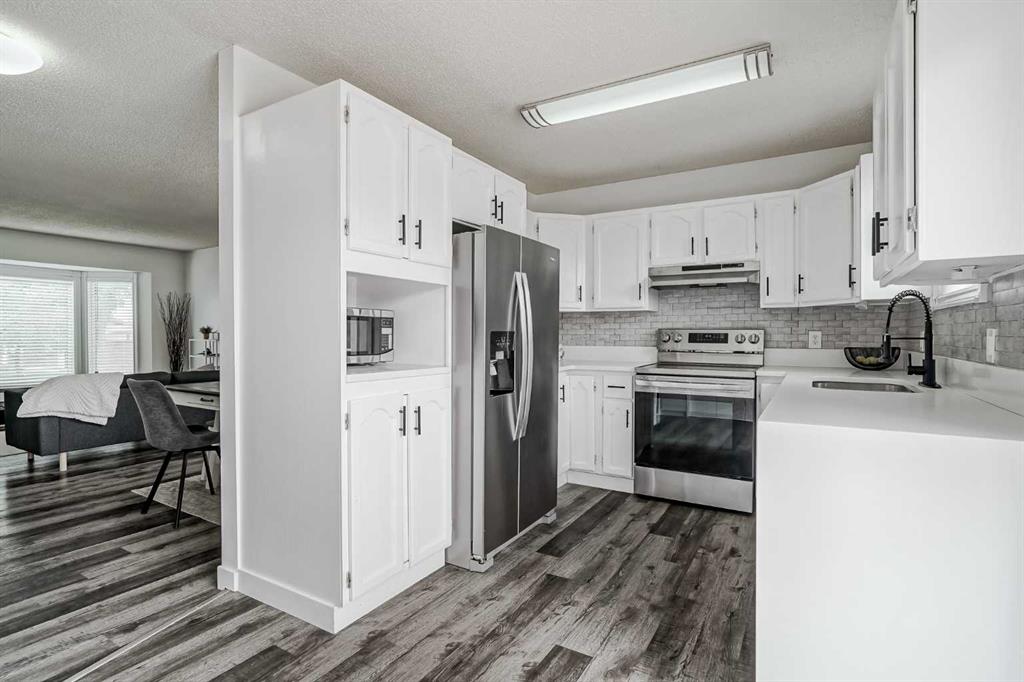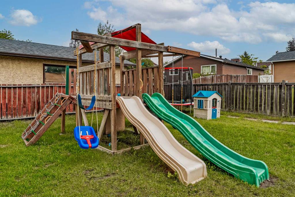 OPEN HOUSE THIS SATURDAY FROM 2:00-4:00PM! Welcome to this beautifully updated 4-bedroom home with a double attached garage, offering over 2,000 sq ft of versatile living space in a family-friendly community. From the moment you step inside, you’re greeted by stylish new vinyl plank flooring and a striking feature wall that sets the tone for the rest of the home. The updated kitchen is both functional and inviting, featuring white cabinetry, a brand-new STAINLESS STEEL REFRIGERATOR & DISHWASHER. There are sliding patio doors just off of the kitchen that lead to good sized deck—perfect for summer barbecues and gatherings. Step outside to discover an expansive backyard that’s truly a standout feature. With a huge playset for the kids and plenty of room to run, garden, or simply relax, it’s the kind of outdoor space that grows with your family. Whether it’s weekend adventures or after-school fun, the yard is ready for it all. Upstairs, you’ll find three generous bedrooms, including a spacious primary suite with a private 2-piece ensuite. Both the ensuite and main bathroom have been UPGRADED with stylish new vanities, while the main bathroom also showcases a beautifully tiled shower—adding a touch of modern luxury to your daily routine. The lower level is a true highlight, boasting a massive family room anchored by a charming BRICK FIREPLACE and a convenient side entrance—ideal for entertaining, or multi-generational living. The basement offers even more flexibility with a large recreational room that has a spacious laundry section with newer WASHER & DRYER (2023). A fourth bedroom completes this level perfect for guests, a home gym, or an office. Location is the cherry on top—you’re just a SHORT WALK from the C-TRAIN, schools, shopping, and all essential amenities, making daily life a breeze. Additional updates include a NEWER FURNANCE (2023), giving you peace of mind for years to come. With thoughtful upgrades, an unbeatable location, and space for everyone to thrive, this home checks all the boxes. Don’t miss your chance to make it yours!