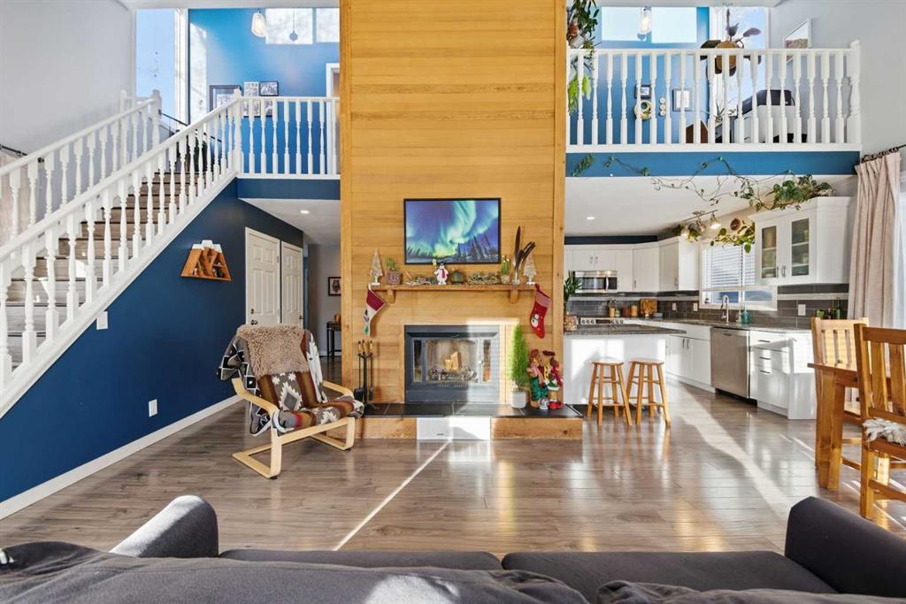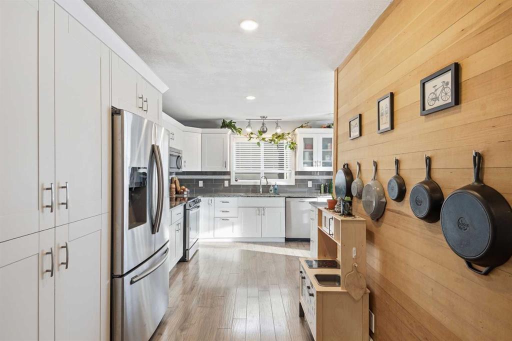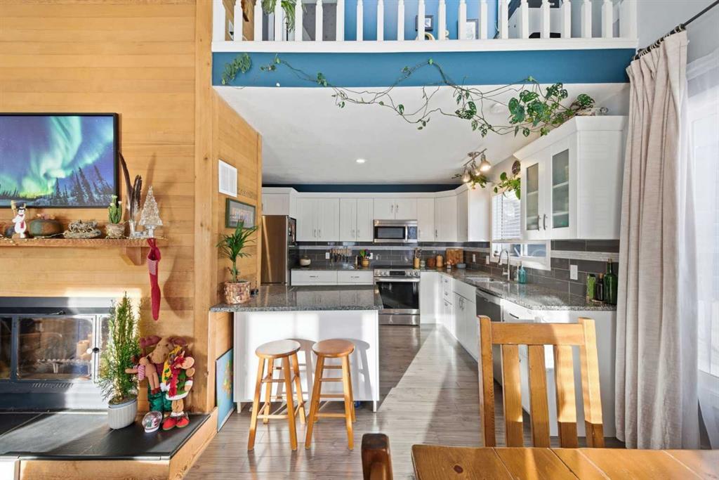 ***OPEN HOUSE Sunday Dec.21 from 2pm – 4pm***Welcome to this beautifully renovated 4-bedroom, 3-bathroom home, ideally located within walking distance to the coffee/ice cream shops, dining, and amenities of downtown Cochrane. Thoughtfully updated from top to bottom, this property offers exceptional versatility, comfort, and excellent income potential with a basement kitchen, featuring a separate entrance. Recent upgrades include a fully renovated kitchen and bathrooms, new flooring, fresh paint, updated light fixtures, a newer roof, hot water tank, furnace, and Jeld-Wen windows and doors. The developed basement features new carpet and paint, along with a wet bar/kitchenette—ideal for a rental or extended family living. The basement was previously rented for $1200/month. The main level showcases an open-concept design with impressive 14’ vaulted ceilings and a wood-burning fireplace at the center of the home, creating a warm and inviting focal point. The updated kitchen offers newer cabinetry, granite countertops, and stainless-steel appliances. Main Floor Laundry adds everyday convivence. The primary bedroom is also conveniently located on the main level and features a walk-through closet, 3-piece ensuite and French door leading to the back yard. Upstairs, you’ll find two additional bedrooms with generous storage, an open office area, and a 4-piece bathroom. The private backyard is perfect for entertaining and relaxing, featuring an oversized deck with pergola, a large yard, and an impressive oversized 24’ x 24’ double garage with 10’ ceilings and in-floor heating. Just steps from the Tim Bannister Memorial Ice Rink and within walking distance to Cochrane Christian Academy, Cochrane Valley Montessori School, and Rocky View School, this move-in-ready home offers an outstanding combination of location, upgrades, and income potential.