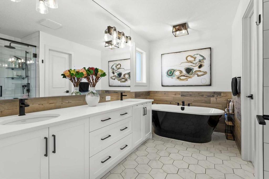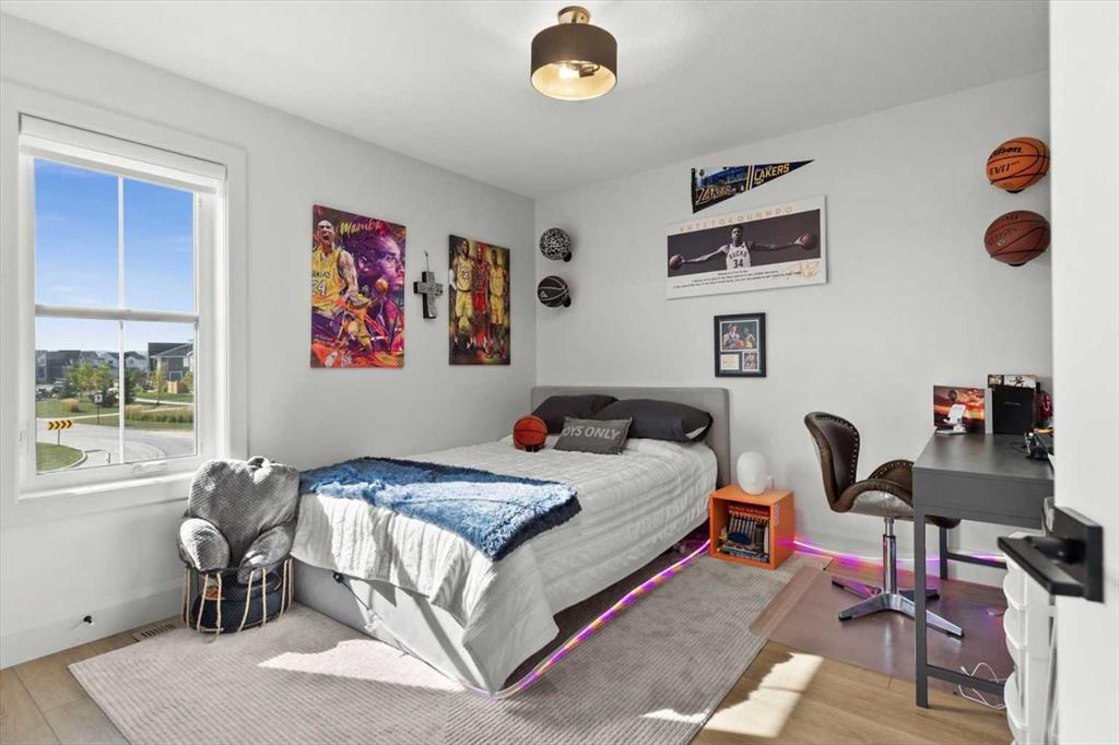 Located in the sought-after, award-winning community of Harmony, this newly built farmhouse-inspired modern design is sure to impress. With over 2,300 sq. ft. of thoughtfully designed living space and more than $40,000 in upgrades, this Broadview-built home is the perfect family retreat, complete with a double detached garage and plenty of storage options throughout. Move-in ready with thoughtfully selected upgraded finishes, it’s designed for both comfort and style. The main floor, with abundant natural light and large windows, features an open-concept living and dining area, a modern chef’s kitchen with quartz countertops, beautiful backsplash and stainless steel appliances, a private office, and a stylish powder room. Step outside to your dream oasis, a full-length deck with a custom built pergola, privacy walls, BBQ area, lounge space, outdoor lighting and newly hot tub—perfect for entertaining or relaxing evenings. Upstairs, a modern bonus room provides an exceptional space for relaxing, alongside two bedrooms with closet organizers, a 5-piece bathroom, and a laundry room with plenty of additional storage. The primary suite is spacious and bright with large windows, featuring a spa-inspired 5-piece ensuite with beautiful tile, a modern freestanding tub, and a large walk-in closet. The basement remains undeveloped, ready for your personal touch. Additional highlights include gemstone lighting, air conditioning, water softener, premium flooring, custom built-ins, upgraded staircase railings, and upgraded lighting and tile throughout. The yard is an open canvas awaiting your green thumb—perfect for creating your own outdoor oasis. Combined with striking curb appeal, a functional family-friendly layout, and Harmony’s exceptional amenities—including scenic lakes, pathways, golf course, and welcoming community spirit—this farmhouse-inspired home truly has it all. Conveniently located across from the school bus stop, it’s an ideal family home.