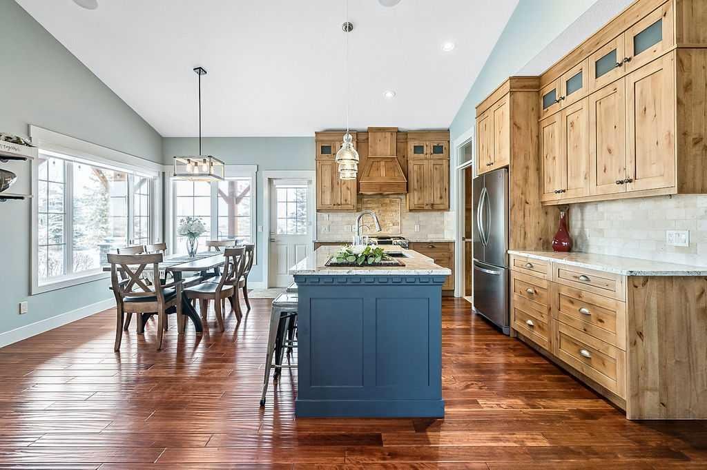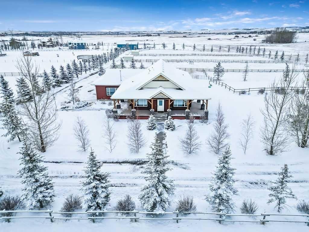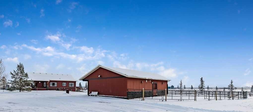 Every now and again an acreage property comes on the market that ticks a lot of sought after boxes and is in move in condition-this may be the one for you! This 1781ft2 appealing custom built walk out bungalow is situated nicely on 5 acres and definitely has the horse enthusiast in mind with 3 large HORSE pens all with shelters and automatic waterers PLUS A HEATED BARN/shop! This well thought out property oozes charm and functionality right from the custom gated entrance to the last custom rail fence and everything in between! So much so, that only a personal visit can show! This clean well maintained home exudes “quiet luxury” and offers the perfect combination of quality and practicality in every sense in order to truly enjoy the rural lifestyle! Close enough to Okotoks and Calgary (12 minutes) to make a daily commute easy and stress free! Come take a stroll through this appealing country acreage and start planning your next move! OPEN HOUSE Sunday DECEMBER 7, 1:30-4 pm.