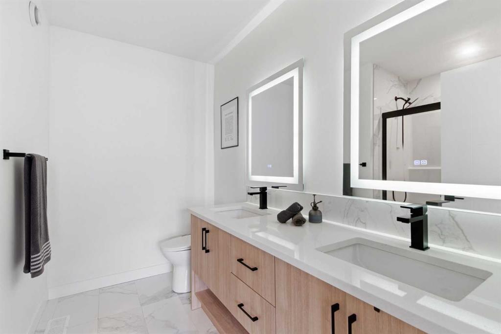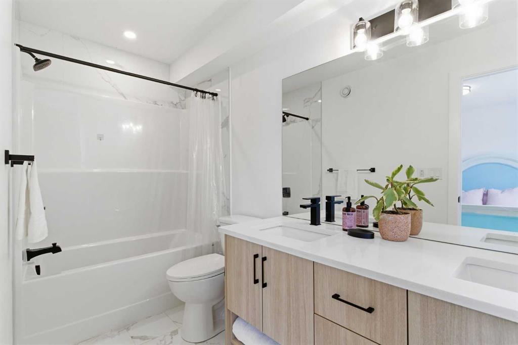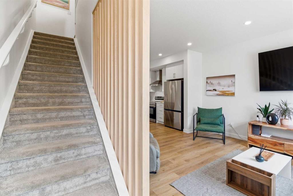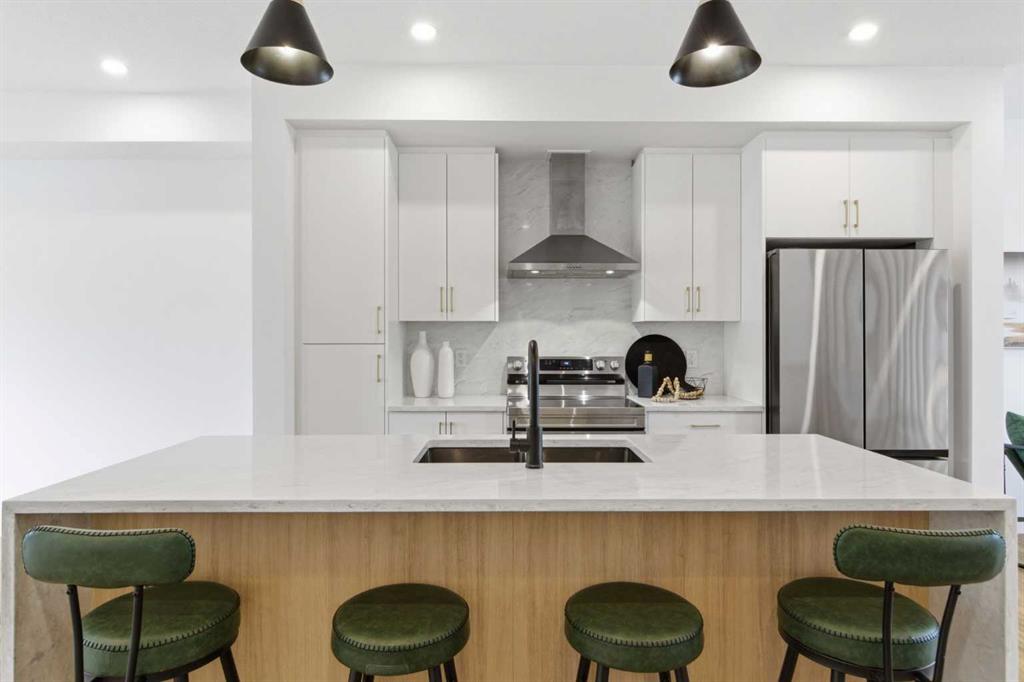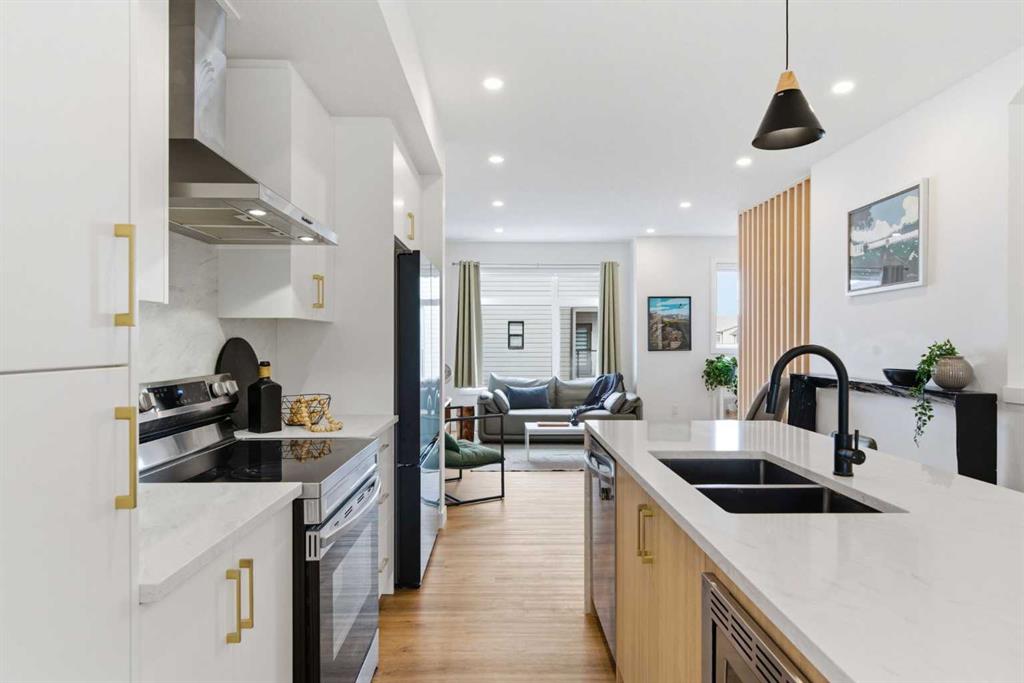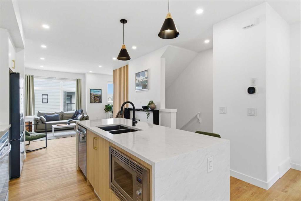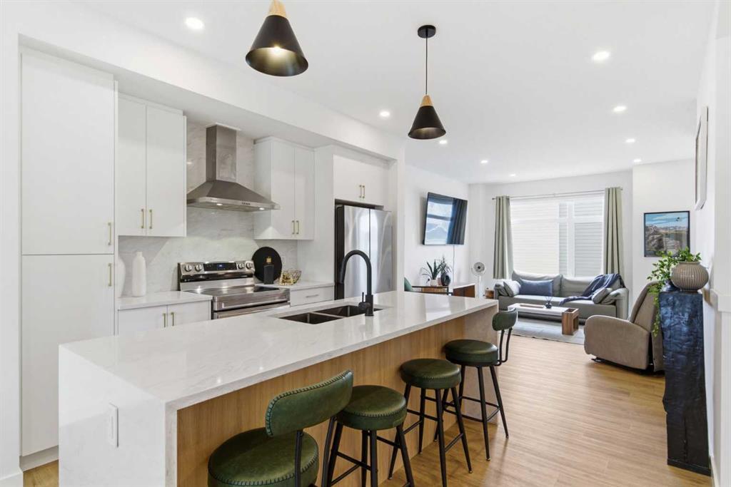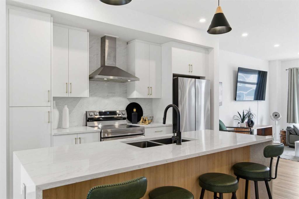 Wow – this is it! Located in the heart of Mahogany, this three-level townhome blends modern design with functionality, all within one of Calgary’s most sought-after lake communities. The entry level is where this home sets itself apart. The SINGLE ATTACHED GARAGE is finished with a clean EPOXY FLOOR and offers more than just parking, with additional STORAGE tucked neatly UNDER THE STAIRS, giving you a place for seasonal items, gear, or everyday extras that need to stay organized but out of sight. Just beyond, the OFFICE / FLEX SPACE becomes one of the most valuable areas in the home. Fully separated from the main living space, this room offers true privacy, making it ideal for working from home without distraction. It’s equally suited for a home gym, creative studio, or even a quiet guest retreat. Natural light and direct access to the lower concrete PATIO add to its versatility. Upstairs, the main living level opens into a bright, welcoming space designed for connection. The kitchen sits at the center, anchored by a stunning WATERFALL QUARTZ ISLAND that naturally becomes the place people gather. STAINLESS STEEL APPLIANCES, elegant GOLD HARDWARE, and clean finishes give the space a polished, modern feel, while LUXURY VINYL PLANK flooring ties everything together with warmth and durability. The dining area flows seamlessly onto a SOUTH-FACING BALCONY, bringing in beautiful natural light and offering the perfect spot for morning coffee & summer BBQs. On the opposite side, the living room is spacious with a custom FEATURE WALL that adds character without overwhelming the space. REMOTE CONTROLLED BLINDS & CENTRAL AIR CONDITIONING elevate daily comfort. A well-placed powder room completes the floor. The upper level is designed for rest & simplicity. The primary bedroom is complete with a WALK-IN CLOSET and a beautifully finished ENSUITE featuring QUARTZ COUNTERS, designer tile, dual vanities w/ undermount sinks & a stunning walk-in shower. The second bedroom, also offering its own WALK-IN CLOSET, is thoughtfully positioned to provide separation and flexibility for guests, roommates, or family. A second ensuite bathroom mirrors the same elevated finishes, and UPPER LEVEL LAUNDRY makes daily routines feel effortless. This home continues to stand out with features that go beyond the expected. A SINGLE GARAGE PLUS AN OUTDOOR PARKING STALL adds flexibility for multi-vehicle households or guests, while the PET FRIENDLY complex makes it easy to enjoy life here with your 4-legged companions. Living in Mahogany is where this home becomes something more. Known for its incredible LAKE ACCESS, this community offers a lifestyle that’s hard to match. Summer days can be spent paddleboarding, swimming, or relaxing on the beach, while winter brings skating and peaceful walks along the pathways. Schools, parks, shops, restaurants, and amenities are all close by, creating a neighbourhood that feels vibrant year-round. Book your showing today!