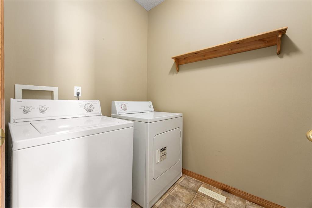The bright and welcoming lower level extends your living space significantly, featuring tall ceilings and large windows that erase any basement feel. A massive family room provides the ultimate area for relaxation or entertaining, equipped with custom built-ins and a second cozy gas fireplace. This level hosts two additional well-proportioned bedrooms and a full three-piece bathroom, making it ideal for guests or hobbies. From the family room, step directly out to a private, paved covered patio and a treed outdoor area, mirrored by a second private patio on the upper level, ensuring you can enjoy connection with the outdoors regardless of the floor you are on. To top off the exterior appeal, a covered front porch faces west, providing the perfect vantage point to enjoy the evening sun.