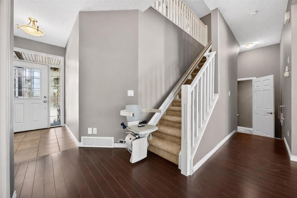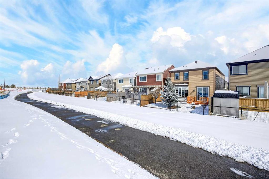 Thoughtful design and everyday comfort come together in this move-in ready home in Windsong backing onto GREEN SPACE and a WALKING PATH, delivering privacy with no direct rear neighbours bordering the property and a peaceful SUNNY WEST BACKING setting to enjoy year-round. An open-concept main level unfolds with hardwood flooring and a modern, neutral palette that enhances both light and flow. Relaxation settles naturally in the living area where a gas fireplace anchors the space and corner windows draw in natural light throughout the day. Connection to the outdoors feels effortless from the dining area where the sliding patio door extends gatherings outside, encouraging an easy transition for barbecuing and quiet evenings with beauitful west sunsets. Function and style align in the well-planned kitchen featuring granite countertops, stainless steel appliances (including a gas range!) and a large granite island that invites casual meals and conversation. Adjacent to the mudroom is the powder room and a professionally installed chair lift along the staircase adds accessibility and long-term flexibility, allowing easier movement between levels while remaining seamlessly integrated into the home. Upper level living continues with a spacious bonus room designed for gathering and unwinding, complete with direct access to a private balcony for fresh air and outdoor relaxation. Laundry is thoughtfully positioned on this upper level, bringing added ease to everyday living. A private primary retreat offers a quiet place to recharge, complemented by a walk-in closet and its own ensuite. Two additional bedrooms provide comfortable accommodations and a 4-piece bathroom keeps busy mornings running smoothly. The outdoor living stands out with a fully fenced yard that opens directly onto the walking path and green space, giving kids and pets room to play while preserving a sense of openness and connection to nature, while the rear deck sets the stage for barbecuing and unwinding in a private setting. Access to Chinook Winds Regional Park, pathways, schools and everyday amenities throughout Windsong reinforces a connected and family-friendly lifestyle while keeping commuting routes within easy reach.