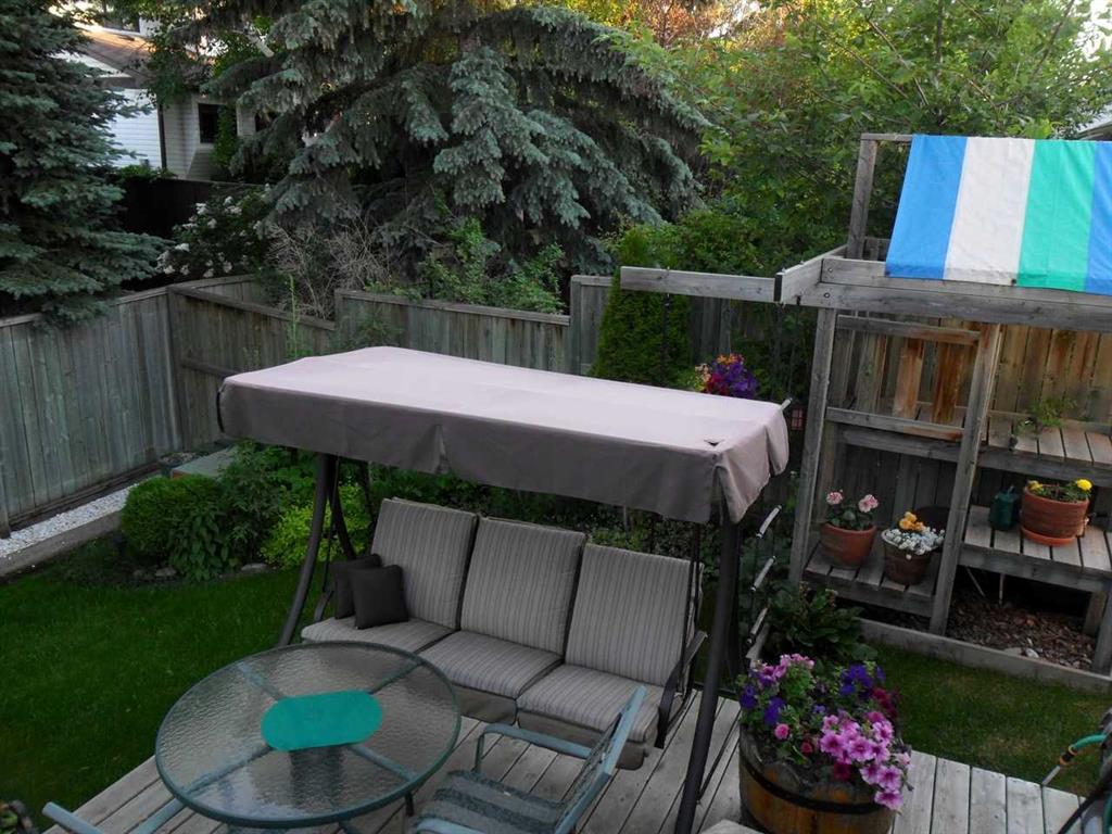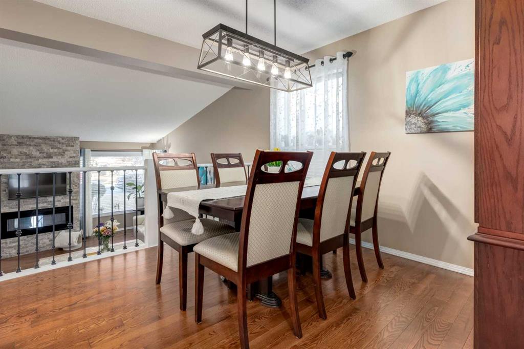 A large portion of this home was renovated in 2023, and it’s a genuinely functional family home in a location that’s hard to beat. You’re minutes to Fish Creek Park, Safeway, Costco, and there’s a daycare just down the street. Add rare RV parking, an EV charger, and an oversized garage, and you’ve got everyday practicality covered. The real highlight is the backyard. With two oversized outdoor spaces, a large upper deck and a separate patio, you get multiple zones for entertaining, kids playing, or quiet evenings outside. There’s also tons of green space, mature trees, and a fully fenced, south facing yard that stays bright and usable all day. Inside, vaulted living room ceilings and big windows bring in great natural light, with a stone surround fireplace anchoring the space. The kitchen features quartz countertops, stainless steel appliances, ample cabinetry, and an eating nook that opens to the deck for easy indoor outdoor flow. Upstairs you’ll find three bedrooms, all a great size for kids and guests. The basement is developed and adds even more flexibility with a fourth bedroom and a large entertainment room, complete with a 110 inch screen and 4K projector (available by separate agreement). The basement also has a roughed in bathroom, offering an opportunity to add a finished bath.