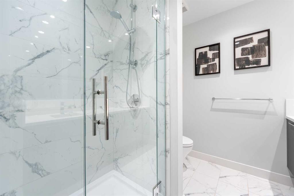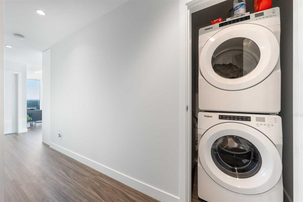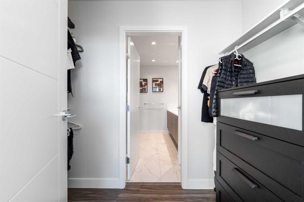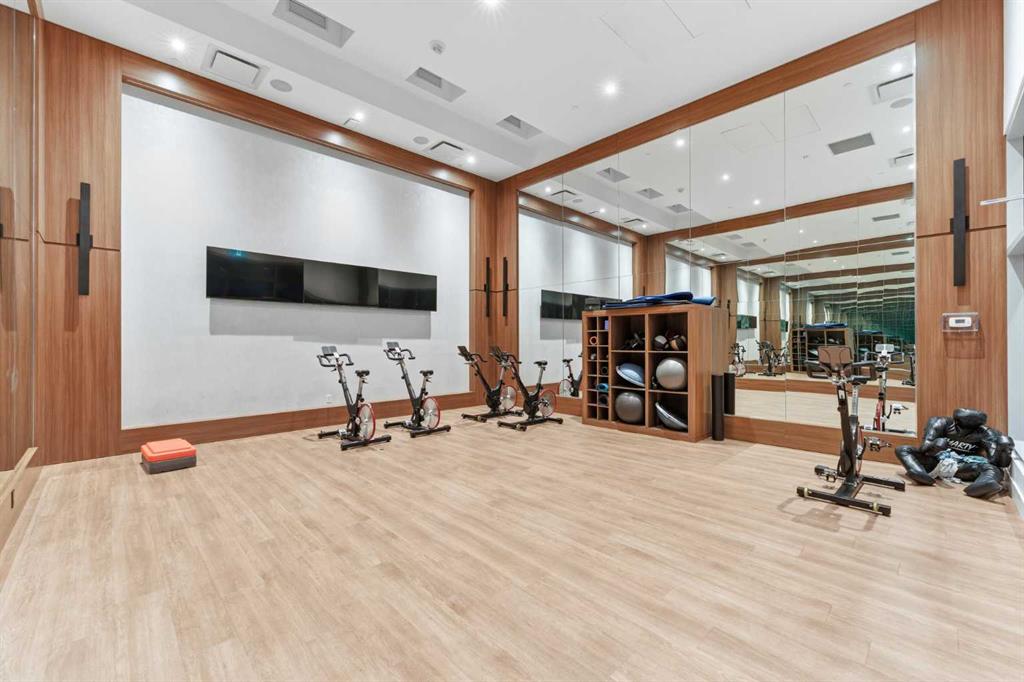 Two heated underground parking stalls and a separate storage locker are included. Ground-floor retail within Arris provides direct access to a Superstore grocery, Shoppers Drug Mart pharmacy, and a liquor store — daily errands without leaving the building. The Bow River pathway system is a short walk from the front door, connecting to Prince’s Island Park, St. Patrick’s Island, and the East Village RiverWalk. East Village offers direct access to the National Music Centre, Central Library, and the restaurants and shops along International Avenue.