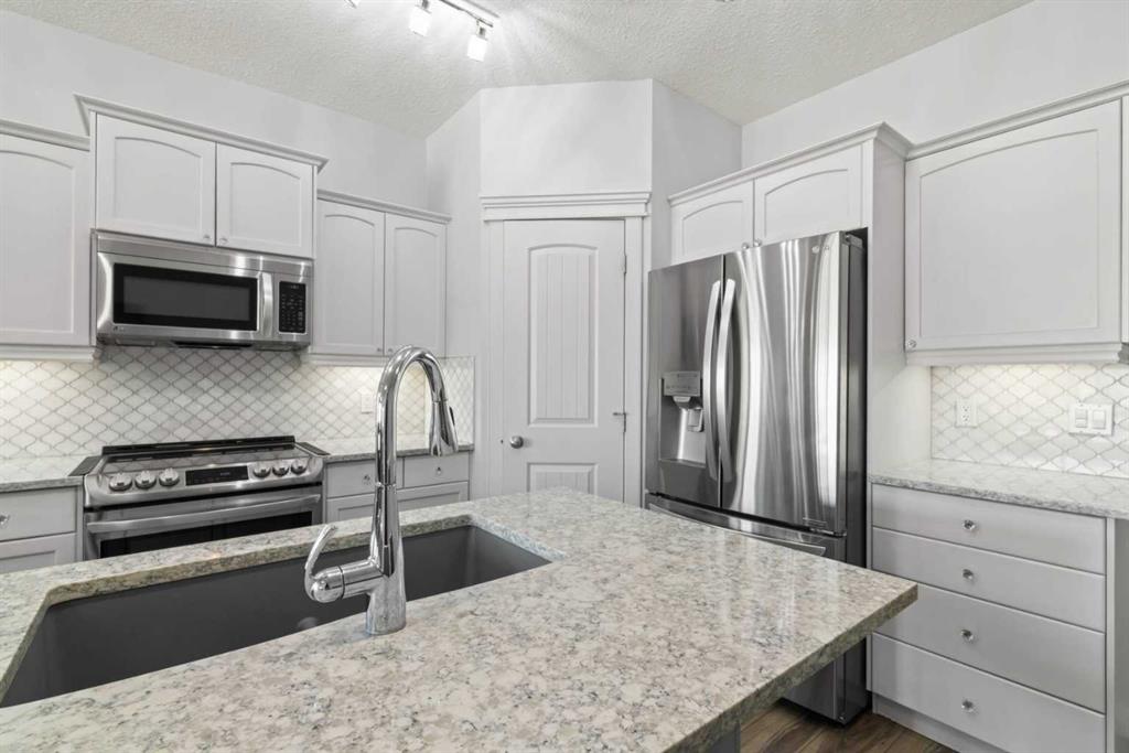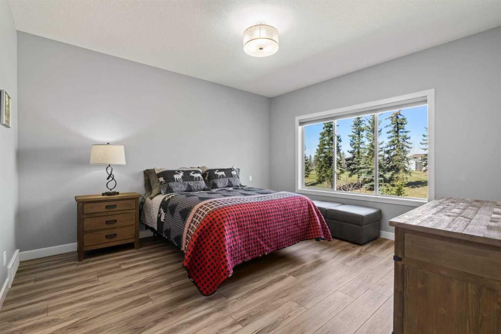 This is truly a rare find! Fully developed executive villa in exceptional location, backing west with breathtaking views of Crystal Ridge Golf Course. Enjoy morning coffee from you balcony surrounded by nature and trees, with deer and birds as you guests. Crystal Ridge Lake Community offers lake privileges including beach area, beautiful lake for boating, swimming, skating, and a beach house, ideal for special events and socializing. This home has had updates and upgrades throughout including: kitchen, bathrooms, flooring, woodwork, appliances, fixtures and much more. Walk in to an open floor plan that exuding class and quality with 2,540 sq. ft. of living space. Bright white kitchen features expansive island/breakfast bar, an abundance of cupboard and counter space, quartz counters, and 2 oversize pantries. Adjoining open dining area and great room features attractive gas fireplace and garden door to large back deck with awning, updated composite flooring, and glass privacy walls. Primary bedroom offers a stunning 5 piece ensuite with soaker tub and separate shower. The main floor den is ideal for home office, or flex room. The main floor 2-piece powder room and laundry mud room has inside access to the double attached heated garage. The lower walkout level is fully developed featuring two large bedrooms, an elegant 5-piece bathroom with massive double steam shower and soaker tub, as well as very spacious family/games room with tile flooring and patio doors to the back yard. Additional features include in-floor heat in basement, central A/C, updated window treatments, garage heater, and water softener. This is a quiet quiet neighborhood with lawn care, snow removal and sprinkler maintenance provided for easy stress-free living. Crystal Ridge Golf course is a public 9-hole course offering league golf, mini golf, clubhouse, lounge, and a superb fine dining restaurant. Don’t miss out on this terrific opportunity to enjoy stress-free living in this exclusive lake/golf course community.