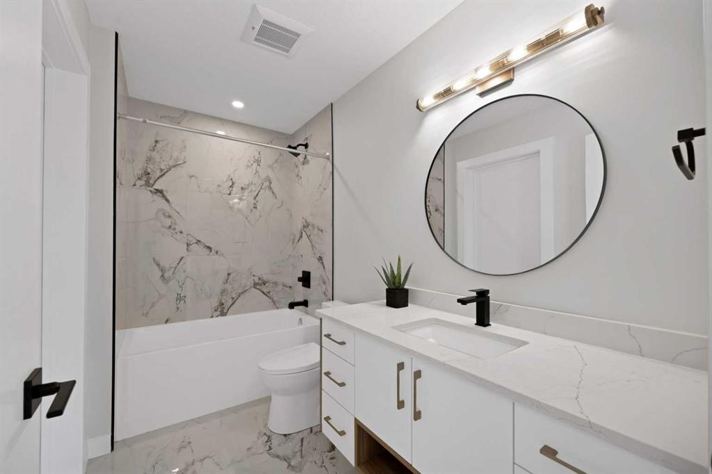This remarkable semi-estate property offers an exceptional blend of luxury, space, and functionality, designed to impress from the moment you arrive featuring LEGAL BASEMENT SUITE, 2 Primary bedrooms, SPICE Kitchen, Built-in appliances, feature walls, bedroom and a full bathroom at the main floor, 2 Living areas, OPEN TO BELOW and a lot more to explore. Situated on a conventional lot, the home boasts a 3 car garage and features 9-foot ceilings on all three levels, enhancing the sense of openness and sophistication throughout. As you step inside, you’re greeted by a dramatic open-to-below foyer with custom feature walls that set the tone for the elegance found across the home. The main floor is thoughtfully designed with a full bedroom and full bathroom, perfect for guests or multi-generational living. A large living area centers around a beautiful gas fireplace with built-in features, while a spice kitchen adds functionality and convenience. The heart of the home is the gourmet kitchen, complete with built-in appliances and a massive island — an ideal space for entertaining and culinary creativity. Upstairs, you’ll find two spacious primary bedrooms. The main primary suite offers a luxurious 6-piece ensuite and a generous walk-in closet, while the second primary features its own elegant 5-piece ensuite. Two additional bedrooms share a third bathroom and are complemented by a huge bonus area, perfect for a media room or play space. A conveniently located laundry room completes the upper floor. The walkout basement has a LEGAL SUITE featuring 2 bedrooms, a kitchen, living area and a 4pc bathroom . With its thoughtful layout, upscale finishes, and room to grow, this home truly offers a lot to explore and even more to love.