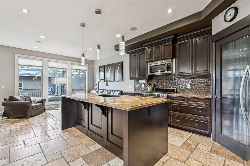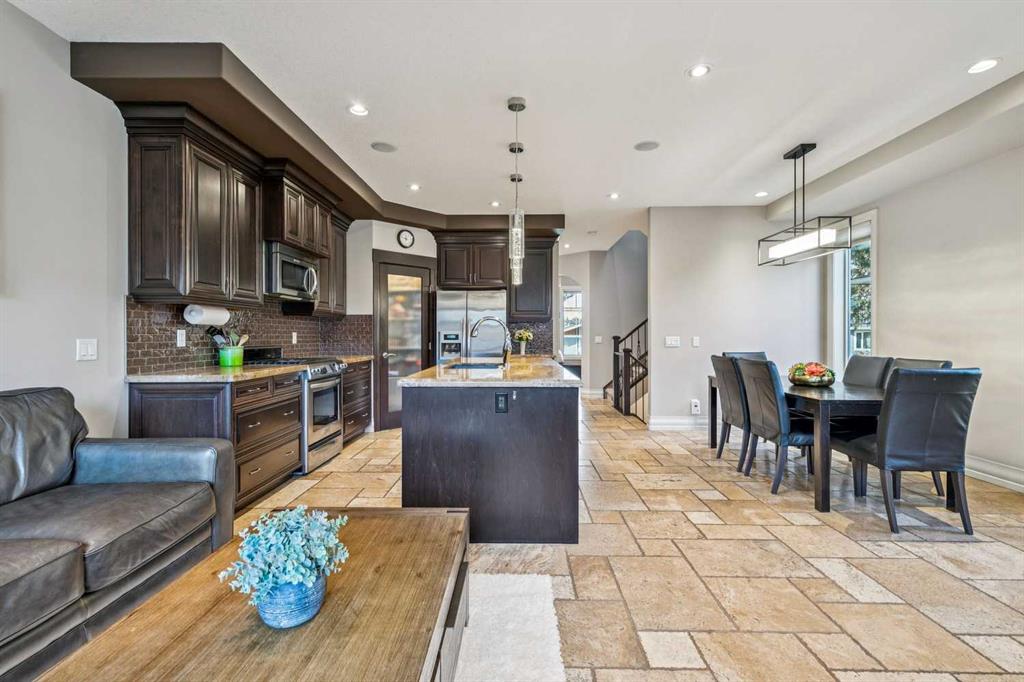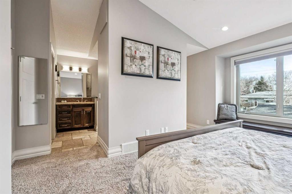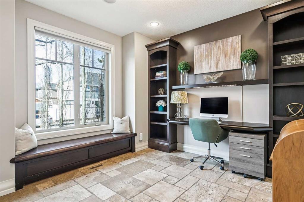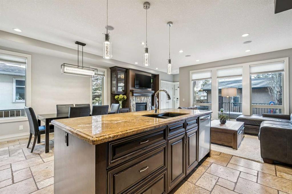 Welcome to 3514 3 Street NW — an executive semi-detached home ideally positioned on a quiet street in the heart of Highland Park. Just minutes to Confederation Park, schools, and downtown access, this beautifully crafted residence offers over 2,600 sq ft of fully developed living space, exceptional curb appeal, and a thoughtfully designed layout for both everyday living and entertaining. The main floor showcases rich travertine tile and a custom, on-site finished kitchen featuring double-stacked granite countertops, premium cabinetry, stainless steel appliances, and abundant storage. The large central island anchors the space, flowing seamlessly into the dining and living areas. A gas fireplace with custom built-ins creates a warm focal point, while oversized windows fill the home with natural light. A dedicated main floor office with custom built-in bookshelves and a window seat provides the perfect work-from-home setting. Upstairs, the spacious primary retreat impresses with vaulted ceilings and a luxurious ensuite complete with dual vanities, a deep soaker tub, and a fully tiled glass shower. Two additional well-sized bedrooms offer generous closets and charming window seats, and the convenient upper-level laundry room adds everyday practicality. The fully developed basement expands your living space with a fourth bedroom, full bathroom, and a large family room featuring a wet bar — ideal for movie nights or hosting guests. Outside, the landscaped yard offers a private outdoor setting to relax and unwind. Your double detached garage is perfect to keep the snow off the cars in the winter. With timeless finishes, custom millwork, abundant storage, and an unbeatable inner-city location, this Highland Park home blends executive style with everyday functionality.