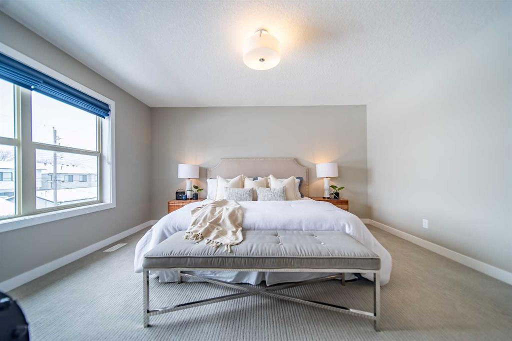 Welcome to this beautifully designed Cardel home in the heart of Glenbrook, one of Calgary’s most charming and established communities. With its mature tree-lined streets, easy access to parks, schools, shopping, and quick downtown routes, Glenbrook offers a vibrant, convenient lifestyle where neighbours genuinely connect, appealing to families and professionals alike. This is not an everyday infill, this property reflects thoughtful design, quality construction, & a floor plan that truly works for real life. From curb appeal to interior finishes, you can feel the difference. As you step inside, you’re welcomed by a generous foyer with a spacious front closet that sets a warm, organized tone for the rest of the home. Just off the entrance, a bright front room overlooks the lovely tree-lined street, making it an ideal home office, reading room, or creative studio. The heart of the home is the sun-drenched open concept kitchen, dining, & living area. Large windows flood the space with natural light, creating an inviting atmosphere for both everyday living & entertaining. The kitchen offers abundant cabinetry & generous prep space, giving home cooks room to spread out while still feeling connected to guests or family in the adjoining dining & living areas. Upstairs, the thoughtfully planned upper level is designed for comfort & practicality. A well sized laundry room keeps the chore zone conveniently close to the bedrooms. Two secondary bedrooms offer great space for kids, guests, or a second office, while the stunning primary retreat anchors the floor. The primary suite features dual closets & a luxurious five piece ensuite with double vanities, a relaxing soaker tub, & a separate glass shower, creating a private, spa like escape to start & end your day. The fully developed basement, you’ll find a comfortable guest bedroom & full bathroom, ideal for guests. A large recreation area offers endless possibilities. With the basement already roughed in for a wet bar, you have the option to further elevate the space. Outside, the backyard is designed for maximum enjoyment with minimal upkeep. You’ll appreciate sun throughout the day, a cozy sitting area perfect for morning coffee or evening drinks, and low-maintenance turf grass. Practical upgrades complete the picture. Central air conditioning keeps the home comfortable through Calgary’s warmer months, while the tankless water heater helps provide efficient, on-demand hot water. A front irrigation system helps maintain the exterior with ease, & the large double garage offers secure parking for two vehicles along with ample room for bikes, tools, & seasonal gear. From sunrise in the east yard to cozy evenings in the living room, every inch of this Cardel built Glenbrook home has been designed to make daily life feel just a little more exceptional.