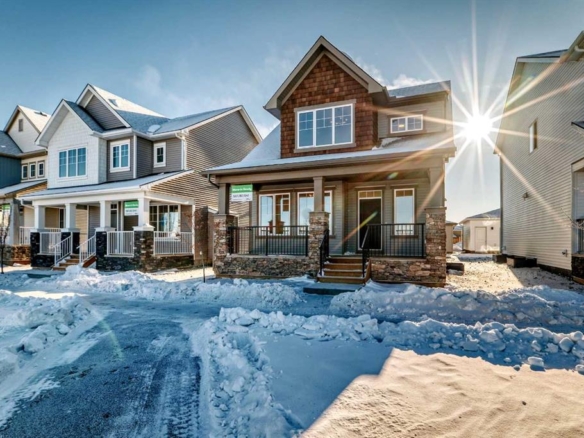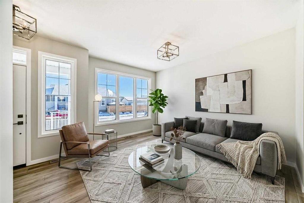 Welcome to The Brian—a thoughtfully designed home that maximizes every square foot while delivering the bright, inviting atmosphere you’ll love coming home to. From the moment you arrive, the large front step creates a welcoming first impression, setting the tone for a home that balances style, comfort, and affordability without compromise. Step inside and you’ll immediately appreciate the smart, functional flow from front to back. A convenient main-floor office/flex space is perfectly positioned for modern living—ideal for working from home, a kids’ play zone, or a hobby/craft room. The main level opens into a bright, wide-open living space where large windows at both the front and back allow natural light to cascade throughout the day, creating a warm and calming environment you’ll love to unwind in. At the heart of the home is a sleek galley-style kitchen designed for both everyday life and hosting. You’ll love the large central island—perfect for entertaining, casual meals, or gathering with friends while dinner is on the go. Finished with two-tone cabinetry, soft-close cabinet doors, quartz countertops, and pot-and-pan drawers, the kitchen delivers standout style with the practical storage you actually need. Upgrades continue with a gas line to the kitchen range and a gas line for your BBQ, making it easy to elevate your cooking—inside and out. Completing the main level is luxury vinyl plank flooring throughout, offering a modern look with durability that fits busy lifestyles. At the back entry, a dedicated rear mudroom helps keep daily clutter organized and out of sight—making mornings smoother and busy family life more manageable. Upstairs, the home continues to impress with thoughtful design choices. The upper-floor laundry room is conveniently located so you can close the door and keep things tidy. The primary suite is a true retreat featuring a generous walk-in closet and an ensuite that’s made for real life—complete with a separate tub and private toilet area, giving everyone more space and privacy to get ready without feeling crowded. With the ensuite and walk-in closet connected, the routine from shower to getting dressed feels seamless and effortless. Outside, you’ll appreciate that a concrete parking pad is already in place for future garage development, adding flexibility and long-term value as your needs evolve. Bright, functional, and thoughtfully upgraded, The Brian is a home that proves affordability and great design can absolutely go hand in hand. Living in Vista Crossing means enjoying the best of both worlds: the convenience of city living just a short drive from Calgary, paired with the charm and slower pace of small-town life in Crossfield. This thoughtfully planned community fosters a strong sense of belonging and connection, where neighbours look out for one another and life revolves around family. Vista Crossing offers endless opportunities for recreation with walking trails, protected wetlands, 20 acres of green spaces & Community Garden