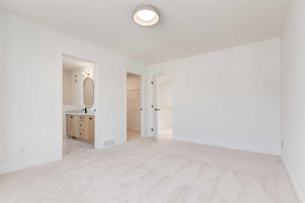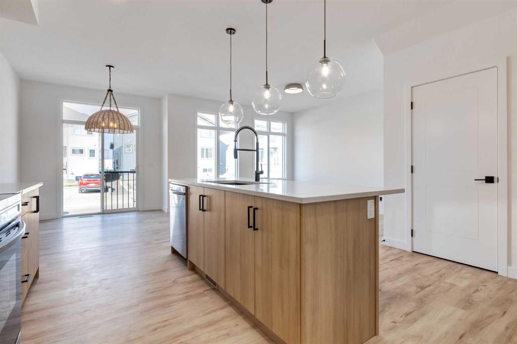 Welcome to the Easton by Rohit Homes, a front-attached garage home offering 1657 square feet, three bedrooms upstairs, a central bonus room, and a separate upper laundry room. This thoughtfully designed home features a 9 foot ceiling on the main level, an oversized 8 foot kitchen island, walk-in pantry, side entrance, and a full appliance package including washer and dryer. Designed for both function and comfort, the Easton delivers a layout that supports everyday living while offering flexibility for growing households. The main floor is anchored by a spacious, open-concept kitchen designed around an efficient work triangle for seamless cooking and entertaining. The oversized island comfortably seats four and serves as the heart of the home, while the walk-in pantry adds exceptional storage. Large rear-facing windows flood the living and dining areas with natural light, creating an open, bright, and welcoming atmosphere. A wide foyer provides practical space for coats, footwear, and everyday organization, while the double attached garage offers room for two vehicles plus additional storage. Finished in the Ethereal Zen interior palette, the interior features custom lighting, curated mirrors, and designer-selected details that create a calm, modern aesthetic with layered warmth and texture. Upstairs, the centrally located bonus room provides flexible living space ideal for a media room, home office, or play area. All three bedrooms are located on the upper level, including a generous primary retreat with a sizeable walk-in closet and a full ensuite featuring a soaker tub and shower. The additional bedrooms are well-sized to accommodate queen beds and workspaces. The separate upper laundry room adds everyday convenience and practicality. Located in the southeast Calgary community of Heartwood, residents enjoy quick access to major roadways, nearby shopping, dining, schools, parks, and everyday amenities. With close proximity to Seton, the YMCA, the South Health Campus, and recreation facilities, Heartwood offers the convenience of established services with the feel of a growing neighborhood. This home is backed by full Alberta New Home Warranty coverage for added peace of mind.