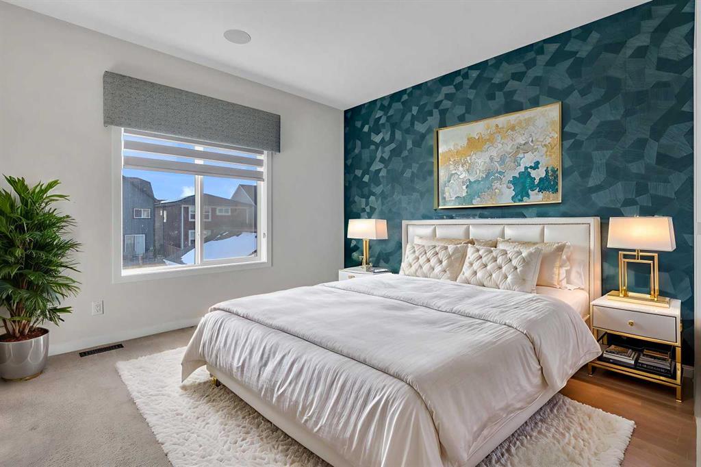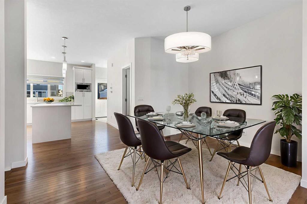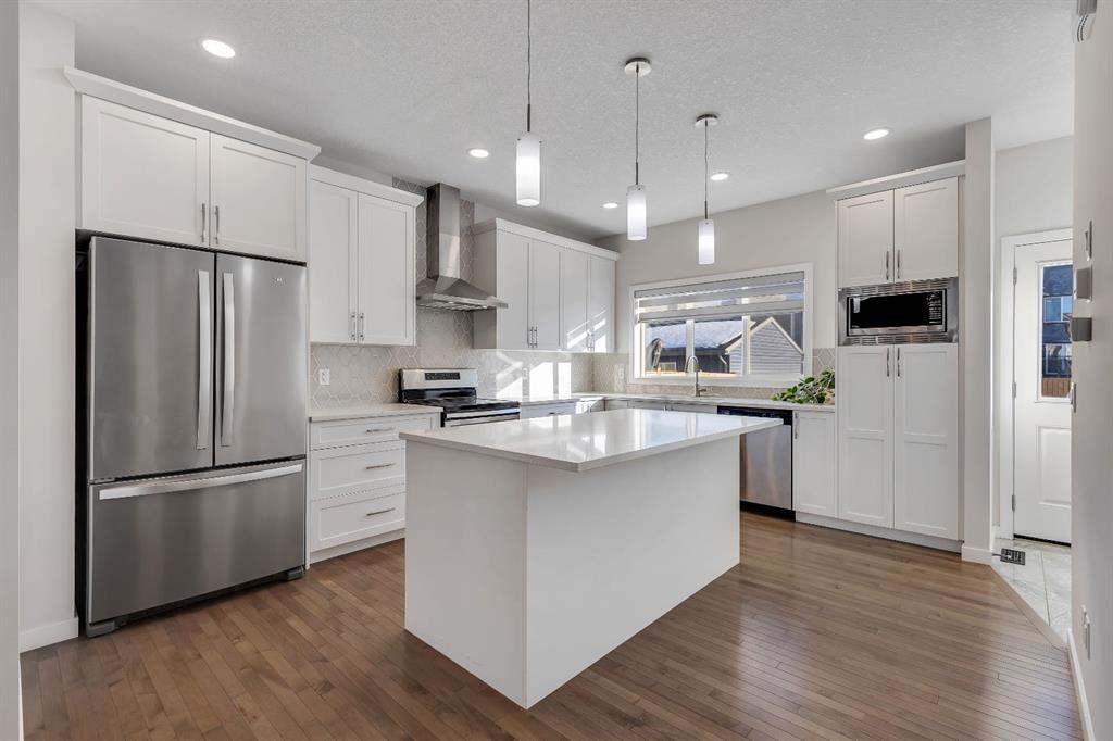 Step into luxury with this former Excel Homes showhome, fully loaded and perfectly situated in the vibrant lake community of Mahogany. Boasting over 2,300 sq. ft. of beautifully upgraded living space, this home features high ceilings and a bright open-concept layout highlighted by a grand foyer with high-end ceramic tile and gleaming hardwood floors throughout the main level. The stylish corner kitchen is equipped with L-shaped quartz countertops, a central island, stainless steel appliances, a chimney hood fan, and large south-facing windows that fill the space with natural light. Upstairs, discover three spacious bedrooms and two full bathrooms, including a luxurious primary retreat with a 5-piece ensuite, enhanced by upgraded lighting and designer feature walls throughout. The fully developed basement, complete with a side entrance, offers a large recreation room, an additional bedroom, and a 4-piece bathroom—ideal for extended family or guests. Complete with central air conditioning, professionally landscaped grounds, and a large deck perfect for entertaining, this home is set in Mahogany, one of Calgary’s most desirable lake communities, offering the best of lake life, urban convenience, and lifestyle. Close to parks, pathways, shops, dining, and year-round recreation, it’s located on a quiet street within walking distance to schools, shopping, and award-winning lake amenities. Spend weekends at the beach, explore wetlands, or enjoy peaceful evening strolls—just steps from your front door.Don’t miss this rare opportunity—contact your favourite REALTOR® today for a private showing.