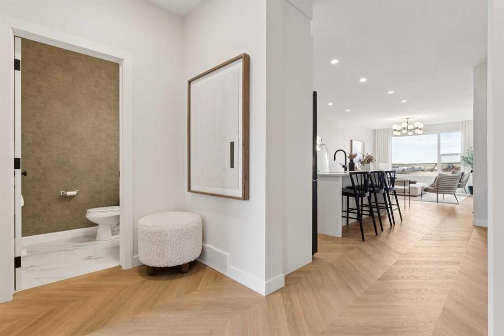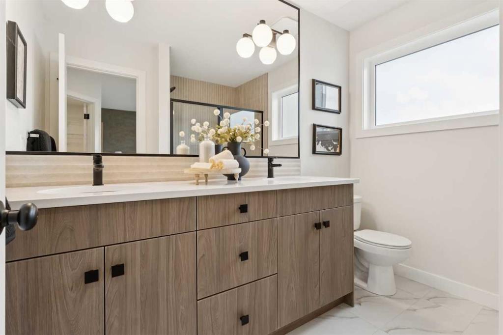Move-in ready! The Lucca by Cardel Homes offers 1,499 sq ft of upgraded living space in the desirable Clearwater Park community of Chestermere. This 3-bed, 2.5-bath home features 9’ main and basement ceilings, an electric fireplace, LVP flooring throughout the main floor and loft, and tile flooring in all bathrooms. The custom kitchen includes soft-close cabinetry, dovetail drawers, black stainless Samsung appliances, upgraded backsplash, quartz countertops, matte black hardware, and a Blanco granite sink. A side entrance provides future flexibility, while the upper floor includes a central loft, laundry, and a spacious primary bedroom with dual sinks. Additional highlights include upgraded railing, enhanced tile package, pot lighting, air conditioning, front and rear landscaping, a 12’ x 11’ exposed concrete patio, a rear gas line, and 30-year shingles. Located in Clearwater Park with easy access to Calgary, amenities, and parks. Photos are representative.