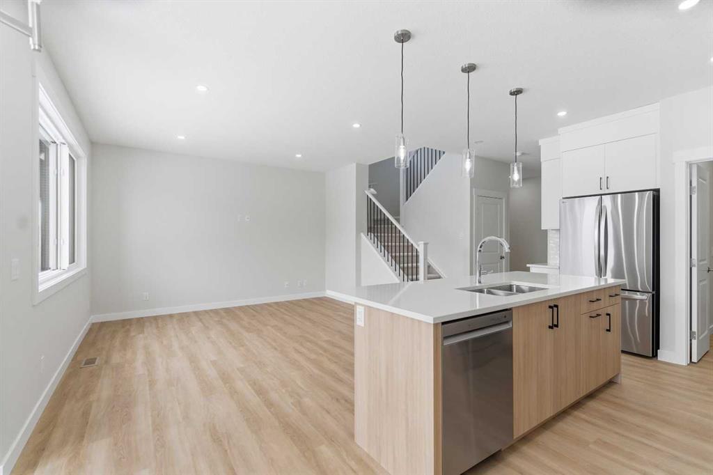 Welcome to this FULLY UPGRADED BRAND-NEW WEST FACING home with DOUBLE ATTACHED GARAGE offers a stunning blend of modern elegance and comfort located in the vibrant, family-friendly community of Cornerstone. The main level boasts a welcoming entrance, powder room, cozy living room, a modern and upgraded kitchen with ample cabinet space and SS appliance package, a spacious dining area with an adjacent door to the backyard to enjoy outdoor activities. The upper level includes a luxurious primary bedroom with a large ensuite and walk-in closet, two additional bedrooms, a bonus room, a 4-piece bathroom and a convenient laundry room completes this level. Level 2 features a huge family room for family gatherings or daily entertainment. Unfinished lower level features a SEPARATE ENTRANCE provides incredible potential for customization and is awaiting your creative touches to transform it into the space of your dreams. Cornerstone is known for its excellent amenities and family-friendly atmosphere, with an easy access to parks, schools, shopping centers and major transportation routes. This is an incredible opportunity to own a beautiful home in one of the most sought-after neighborhoods. With its unbeatable location and immaculate condition, this property is a rare find in today’s market. Don’t miss out on the opportunity to make it yours – schedule a showing with your favorite realtor today before it’s gone!