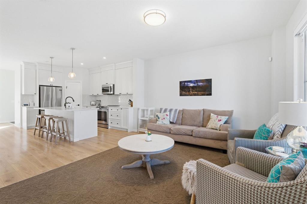 Upstairs, is the generously sized primary bedroom, complete with a walk-in closet and an ensuite bathroom featuring dual sinks, a separate shower, and stylish stone countertops. Two additional spacious bedrooms, a 4-piece main bathroom with stone counters, and the convenience of upper-level laundry complete this level. The fully developed lower level presents a 4th bedroom, an additional full bathroom, and an expansive recreation room, perfect for family gatherings and entertainment. This turnkey ready home is, just a short walk to Fireside School (K–8) and Holy Spirit Catholic School (K–8), along with scenic walking paths, playgrounds, restaurants, an outdoor rink, baseball diamond, and three soccer fields located in the heart of the community. A gas bar, pharmacy, and everyday conveniences are close by. Fireside is a complete, thoughtfully planned community offering schools, parks, open spaces, and commercial amenities. Its strong walkability encourages an active, family-oriented lifestyle, all just 15 minutes to Calgary and 45 minutes to the heart of the Rocky Mountains. Don’t miss the opportunity view the virtual tour or schedule your private showing today!