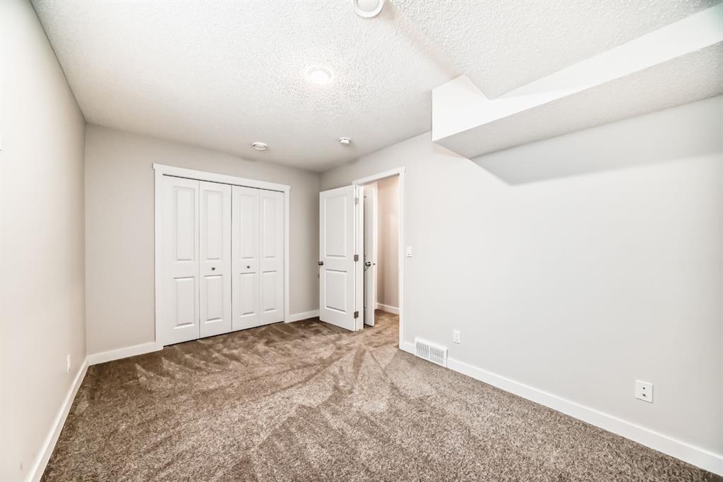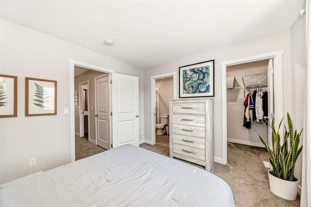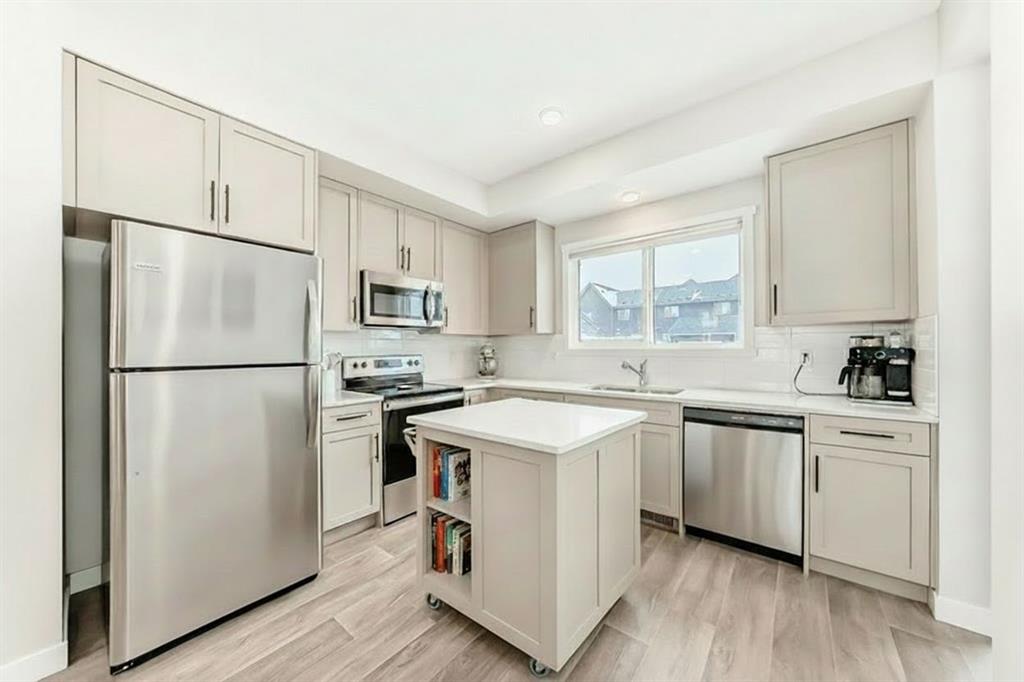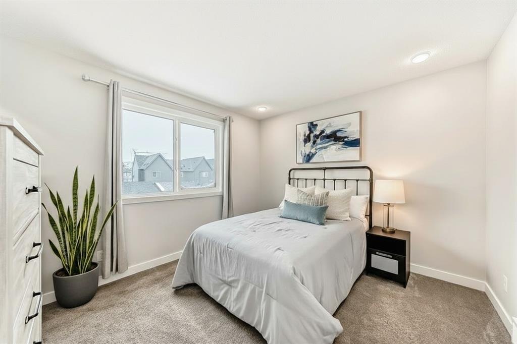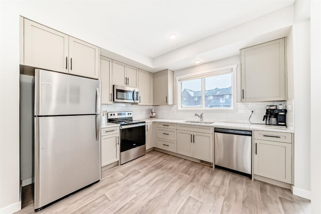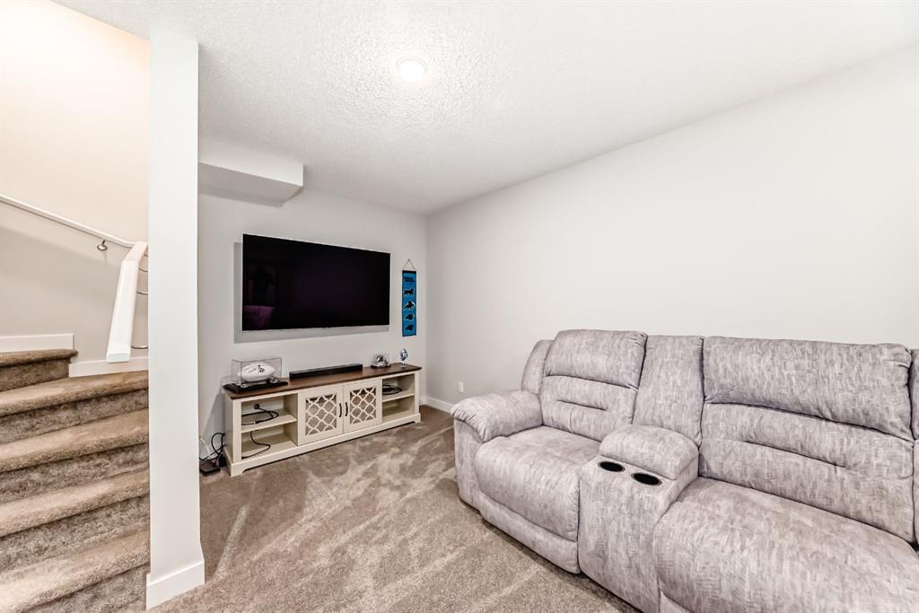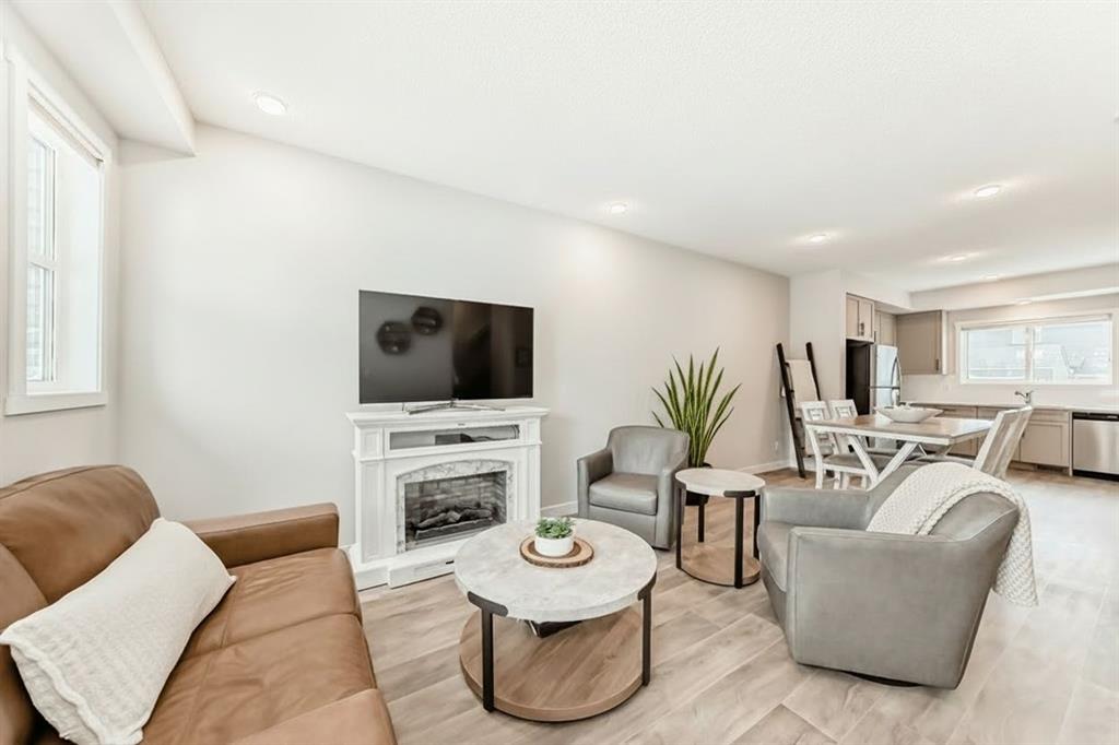 CHARMING TOWNHOME | PROFESSIONALLY FINISHED BASEMENT | GREAT LOCATION | NO CONDO FEES | Welcome to this charming 4 bedroom townhome…well maintained, featuring an open-concept floorplan, vinyl plank flooring throughout the main level and is bright with an abundance of natural light! The foyer offers a walk-in closet…ideal for keeping your personal & seasonal items organized. The living room blends perfectly into the spacious dining area, creating a wonderful space for entertaining with family & friends! The open kitchen, large enough for a moveable island, showcases designer cabinetry in a modern neutral shade, elegant white quartz countertop & stainless steel appliances…including a brand new stove! The rear foyer has additional storage, a pantry closet, & access to the private fenced yard. Completing this main level is a 2pc powder room. Upstairs you will find a Master bedroom, spacious enough for a king size bed and offers a walk-in closet and 3pc ensuite with oversized shower. There are 2 additional bedrooms, a main bathroom with linen storage…plus convenient upper laundry! Professionally finished by the builder, the lower level is fantastic…enjoy game day or your favourite movie on a big screen in the family room; there is also a generous sized 4th bedroom, full bathroom, plus additional storage! This home is nicely located on a quiet street with a private backyard…fully fenced and landscaped with patio & BBQ gas-line! There is back alley access with a parking pad for 2 vehicles, plus the roof is new (replaced in 2025). Ideally located with quick & easy access, just a short walk to nearby shops, services & walking around the pond!