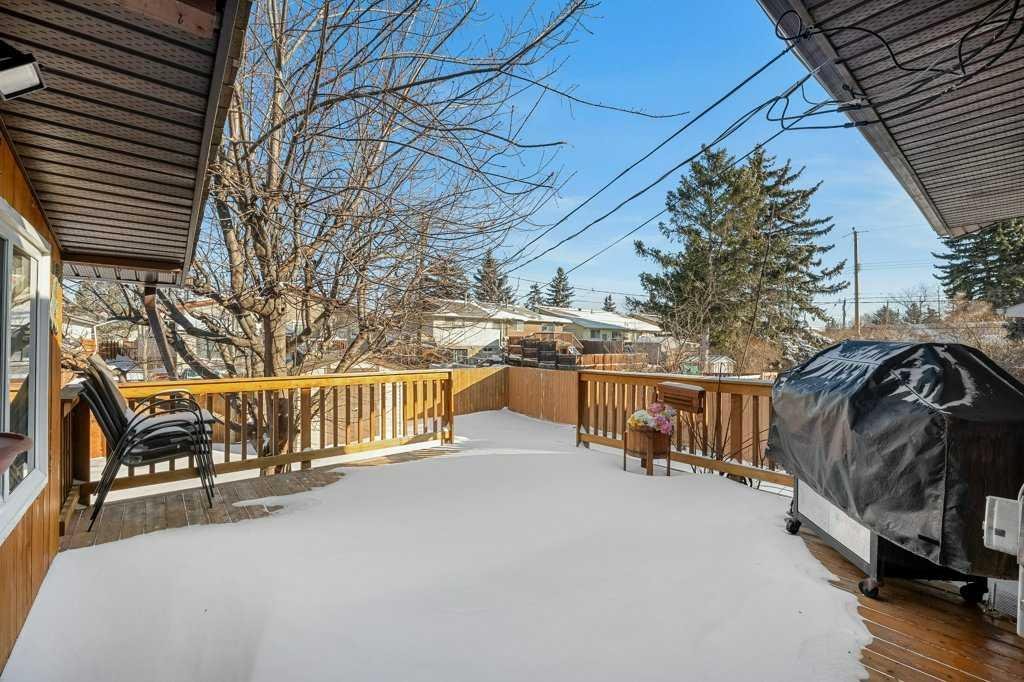 Fantastic turnkey home situated on a huge pie lot in a prime cul-de-sac location. This two-owner family home has been lovingly maintained and updated over the years. Loads of natural light throughout the home. The spacious eat in kitchen is the heartbeat of this home and showcases ample amounts of cabinet and counter space, updated stainless steel appliances and enough space to accommodate a large dining set. Garden door leads out to the large rear deck and backyard. A second door off the kitchen provides access to the 4-season sunroom. Adjacent spacious living room is highlighted by the sunny bay window. Updated main bath features an oak vanity, and deep soaker tub/shower with full tile surround. 2 well sized bedrooms round out the upper level. The fully developed lower level contains the huge family/rec room that offers many flexible uses, 2 more bedrooms and a second, updated full bath. Fully fenced family sized backyard offers mature landscaping, RV parking and room to build your own dream garage. Enjoy the convenience of being minutes to all levels of schools, shopping, C-train, restaurants, parks and splash pad. This is a total package turnkey home. Excellent Value!
