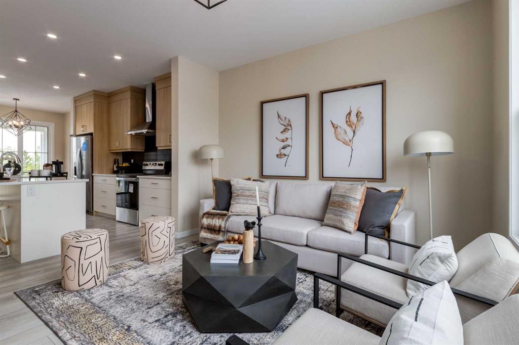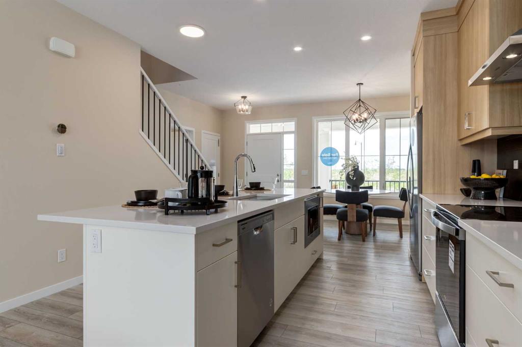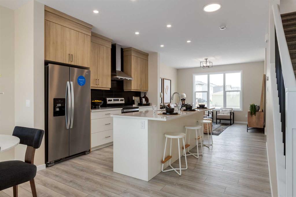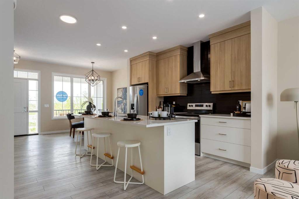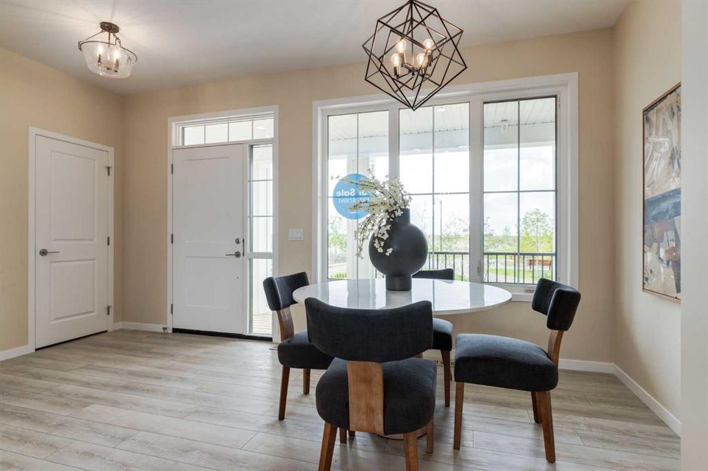 Welcome to The Copeland—a beautifully designed, family-forward home that blends functionality, flexibility, and style in all the right ways. Situated on a quiet street facing a large park, this home offers more than just a place to live—it delivers the kind of space, layout, and location that grows with you. From the moment you arrive, the curb appeal sets the tone. A charming front porch not only enhances the exterior but also creates the perfect morning coffee spot or a welcoming space to relax and watch the kids play in the park just out front. Inside, the main floor shines with oversized front and rear windows, letting natural light pour through the open-concept layout. The heart of the home is a striking galley-style kitchen that’s anything but standard. You’ll love the two-toned cabinetry with timeless white lowers and rich wood uppers, sleek black subway tile backsplash, white quartz countertops, and a large central island—perfect for everything from prepping meals to helping with homework. A modern light fixture hangs above the dining space, adding a designer touch to your everyday moments. Just off the kitchen, a gracious back hall leads to the triple car garage and offers plenty of space for coats, backpacks, and muddy boots. Need an office, playroom, or guest room? The main floor flex space is ready for whatever your family needs today—and tomorrow. Throughout the main level, thoughtful touches like open railing to the upper floor elevate the overall feel. Upstairs, the layout is designed with families in mind. A spacious bonus room offers a second living space, ideal for movie nights or quiet reading. The vaulted owner’s suite is a true retreat with large windows, a walk-in closet, and a luxurious 5-piece ensuite featuring dual sinks, a soaker tub, and a separate shower. Winged secondary bedrooms are positioned for added privacy, and the conveniently located upper floor laundry room makes day-to-day chores that much easier. Whether you’re hosting, relaxing, or simply living your daily routine, every inch of this home is thoughtfully planned to bring comfort & convenience. The triple car garage with a driveway means there’s room for all your vehicles + guests vehicles, bikes, & storage needs. Light, bright, and just right—The Copeland is a place where your family can come together, spread out, & create lasting memories. Living in Vista Crossing means enjoying the best of both worlds: the convenience of city living just a short drive from Calgary, paired with the charm and slower pace of small-town life in Crossfield. This thoughtfully planned community fosters a strong sense of belonging and connection, where neighbours look out for one another and life revolves around family. Vista Crossing offers endless opportunities for recreation with its 4 kms of walking trails, 5 acres of protected wetlands, 20 acres of green spaces, and a community garden. Sports enthusiasts will love the mini soccer field, outdoor hockey rink, skateboard park, and sports fields.