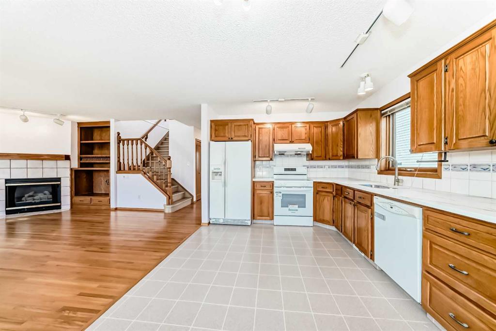 Right across from a green space, welcome to this new renovated single family home in convenient Harvest Hills. It features new roof shingles, new paint, new quartz counter tops in the kitchen and bathrooms, new LVP floors, 2 fireplaces, hardwood floor, wood spindle railings, some newer windows, and newer furnace. Upper floor has 3 good size bedrooms, large ensuite with large shower and walk in closet, and spacious main bath. Main floor with formal dining room / office, large living room with corner fireplace and built in cabinet, open kitchen, breakfast nook with bay windows, and main floor laundry. Finished basement with large family room, corner fireplace, extra bedroom, and flex room. Large backyard has been fully fenced and with large concrete patio. It closes to school, playground, public transit, shopping, and easy access to major roads. ** 36 Harvest Oak Green NE **