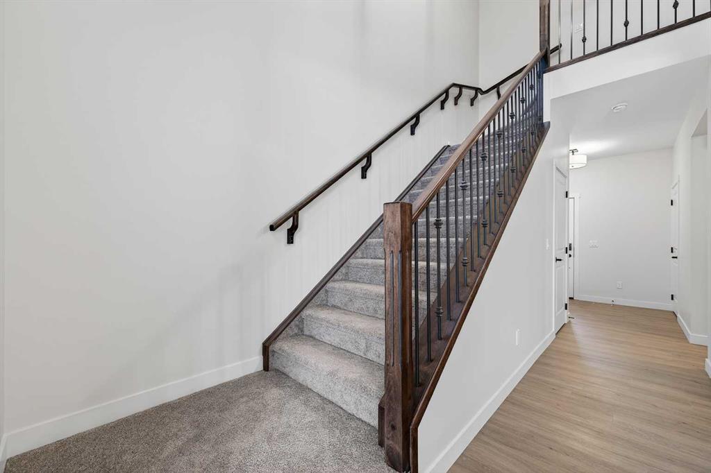 Welcome to 36 Lewiston Common, a beautifully designed 2220 sq ft home by Genesis Builders Group. From the moment you step inside, you’ll be captivated by the soaring open-to-above ceilings and the bright, expansive open-concept main floor. A convenient mudroom off the garage keeps life organized, while the heart of the home, the kitchen, is designed for entertaining. Featuring beautiful cabinetry, quartz countertops, a spacious island and sleek stainless steel appliances. The dining area flows seamlessly into the inviting living room, with a striking focal-point fireplace. A stunning spindle staircase leads you upstairs to a central bonus room offering perfect separation from the primary suite and additional bedrooms. The primary suite is a true retreat, spacious enough for a king-size bedroom set, complete with a large walk-in closet and a spa-like ensuite featuring dual sinks, a luxurious soaker tub, and an oversized shower. Two additional bedrooms, each with a walk-in closet, are complemented by a dedicated full bathroom. A convenient second-floor laundry room makes daily chores effortless. The unfinished basement has its own separate entrance and 9-foot ceilings. It is a blank canvas, waiting for your design ideas. You choose how you want to live when you live in Lewiston, a community in northeast Calgary. Connected by ample pathways, lush with green spaces, and refreshed by a naturalized stream corridor, Lewiston is an ideal place to settle into and call home.