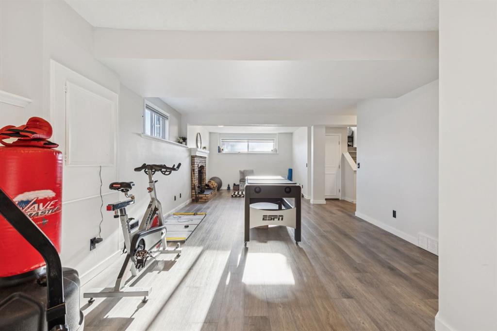 • Large recreation room with wood-burning fireplace