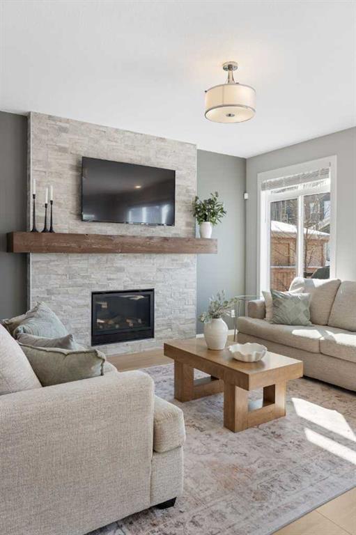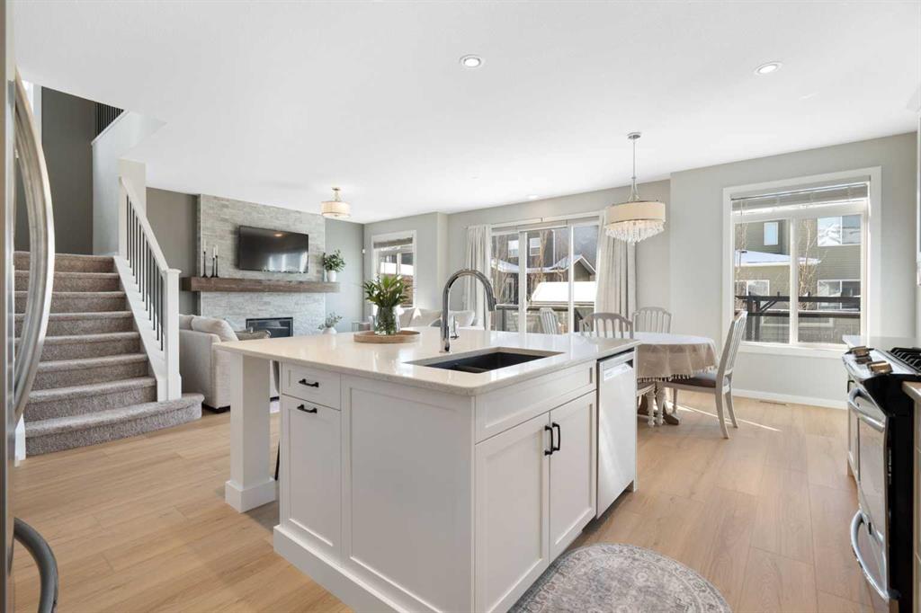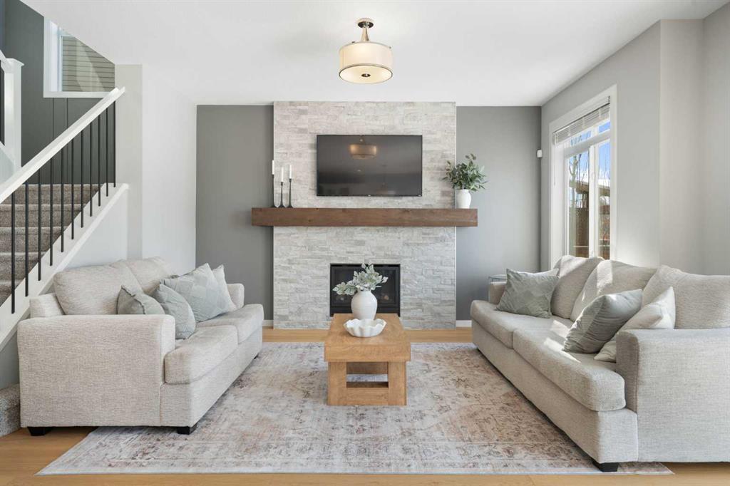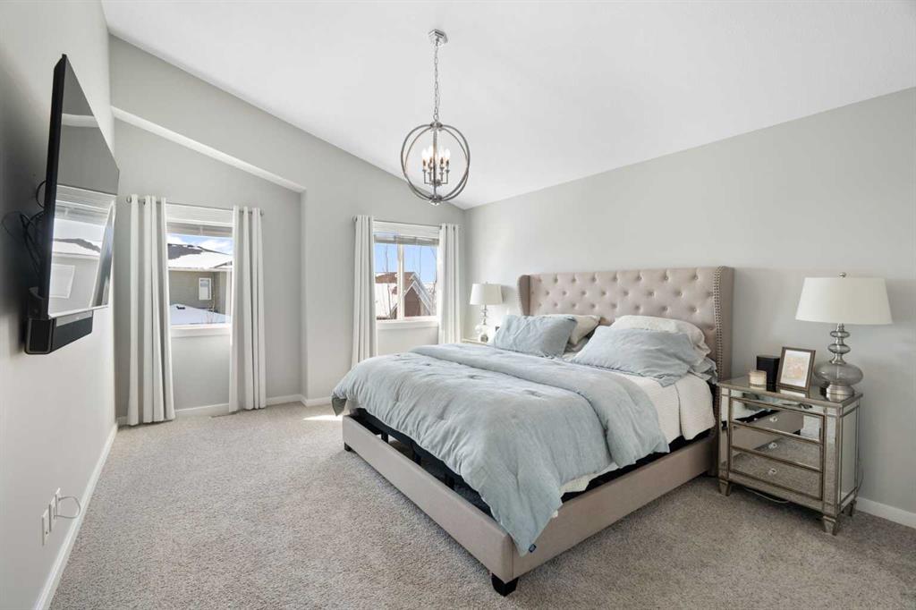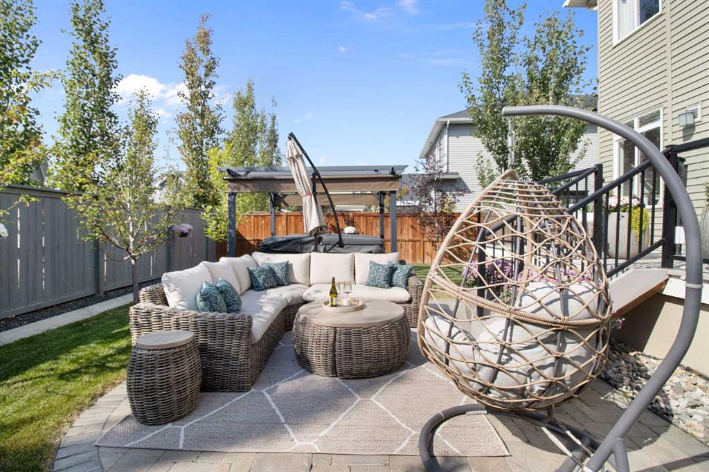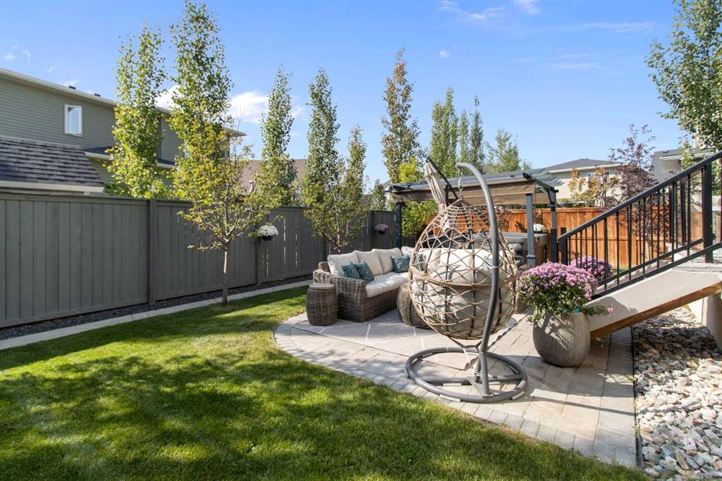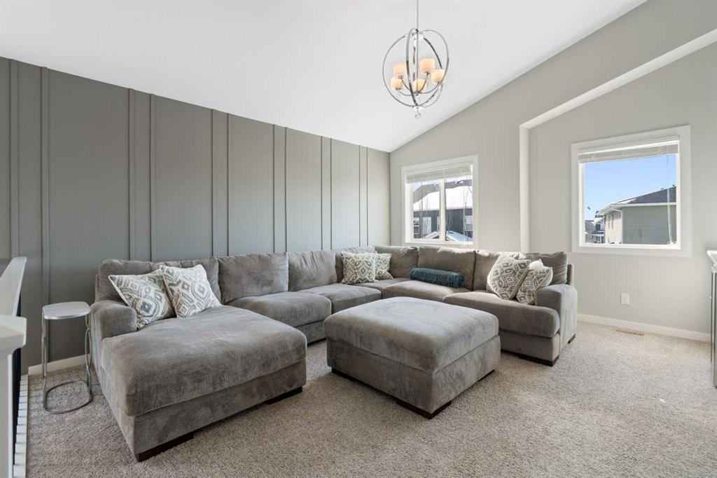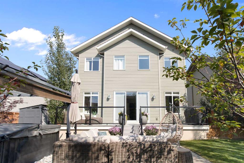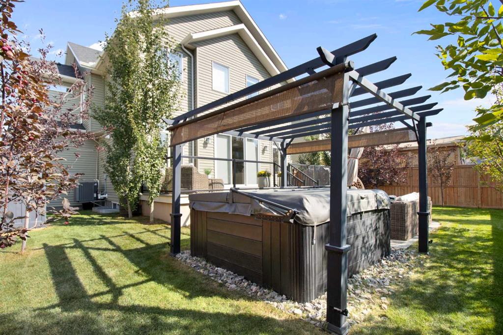 Hello, Gorgeous! Welcome to this beautifully maintained two-storey family home offering over 2,616 sq ft above grade in the desirable community of Bayside. Thoughtfully designed for comfortable everyday living, this home features 4 bedrooms, 2.5 bathrooms, and a spacious bonus room upstairs, creating the ideal layout for growing families. The bright main floor offers a welcoming foyer, a dedicated office with upgraded glass inserts, and an open-concept kitchen, dining, and living area anchored by a cozy fireplace. The kitchen provides ample prep space, a pantry, and a seamless flow into the dining area, perfect for both daily meals and entertaining. Upstairs, the generous primary suite includes a walk-in closet, vaulted ceiling and a relaxing 5-piece ensuite, while three additional bedrooms, a full bathroom, and convenient upper-floor laundry complete the level. The basement is partially developed with a large gym area and plenty of storage, offering great flexibility for future development. Outside, the fully landscaped backyard with many trees creates a private setting to relax or entertain, complete with a hot tub (2018) and pergola. Additional highlights include new flooring, central air conditioning, and Gemstone exterior lighting with remaining warranty. Located on a quiet street in one of Airdrie’s most loved communities, Bayside offers scenic canals, pathways, parks, and easy access to schools, shopping, and amenities. This is a wonderful opportunity to own a spacious, move-up family home in an established neighbourhood.