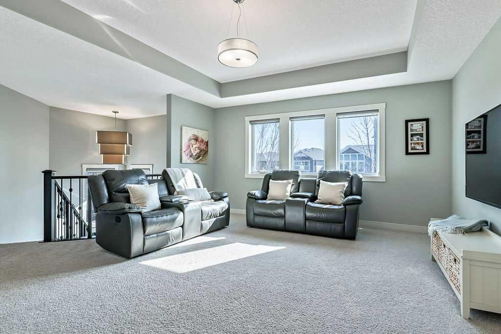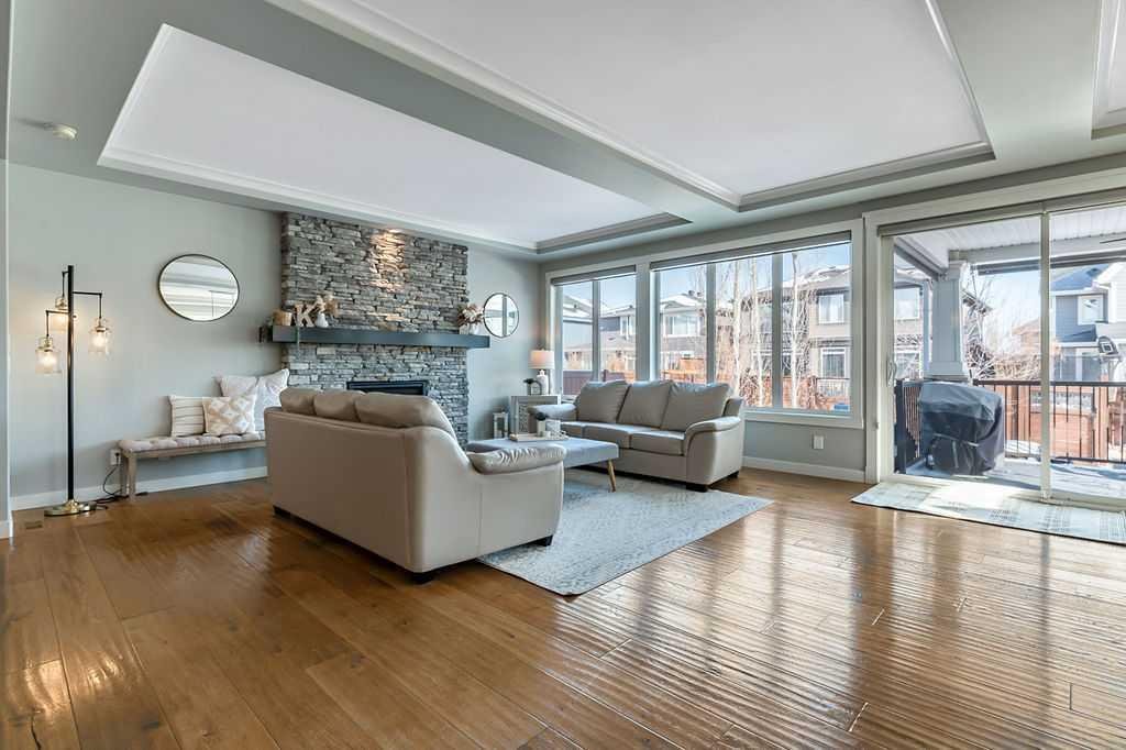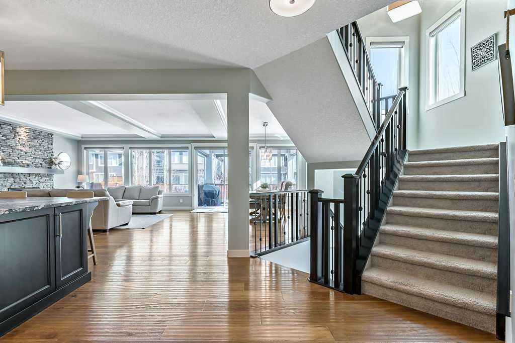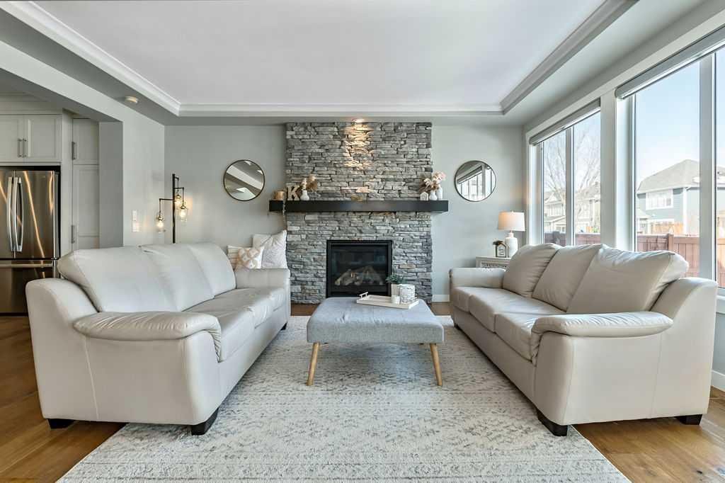 Welcome to Auburn Bay, one of Calgary’s most sought-after Lake Communities, offering year-round lakeside living. This immaculate property offers a blend of luxury, convenience, and a vibrant community lifestyle, boasting over 4,400 square feet of developed living space and is situated on a desirable corner lot, backing onto one of the community’s semi-private lake pathways. The gourmet kitchen is a chef’s dream, featuring leathered granite countertops, custom stainless steel range hood, full-height cabinets, a butler’s pantry, and high-end stainless steel appliances. Filled with natural light, the living areas are spacious and inviting, great for entertaining. The home also includes central A/C for year-round comfort. This elegant and extensively upgraded home includes 3+1 bedrooms and 3.5 bathrooms. The large primary bedroom features a double-sided stone fireplace and a luxurious ensuite with a stand-alone soaker tub and glass/tile shower. The washer, dryer and 75-gallon hot water tank were replaced in 2024. This home features a beautiful aggregate driveway leading to a spacious triple garage with epoxy flooring and convenient storage racks. Professionally landscaped with an abundance of trees, the property includes a full irrigation system and an artificial turf dog run for easy maintenance. Enjoy the outdoors on the covered deck, complete with roller shades, perfect for all-season use. The Homeowners Association offers year-round activities and exclusive lake access, enhancing your living experience. Walking distance to multiple schools, shopping, dining and more. Just minutes to South Health Campus, YMCA, various restaurants, and quick access to Stoney Trail and Deerfoot.
