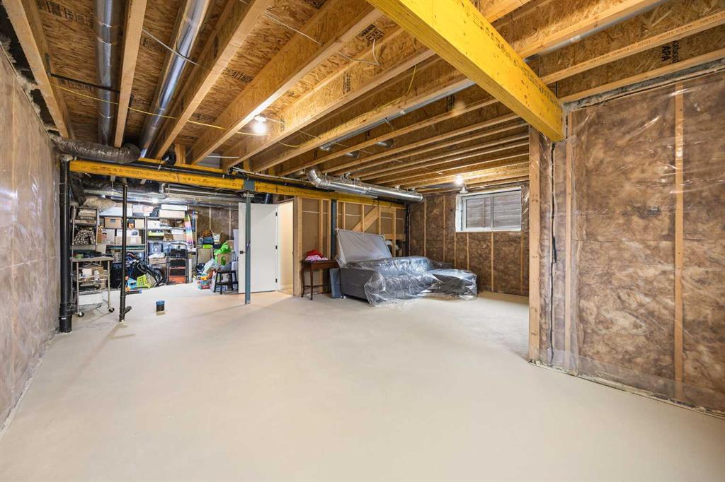 The unfinished basement with 2 large windows, high ceiling, and rough-in bathroom offers excellent potential for future development.