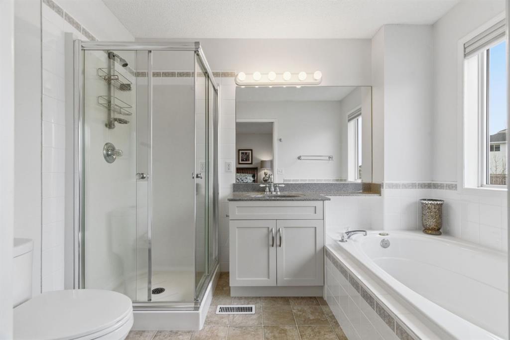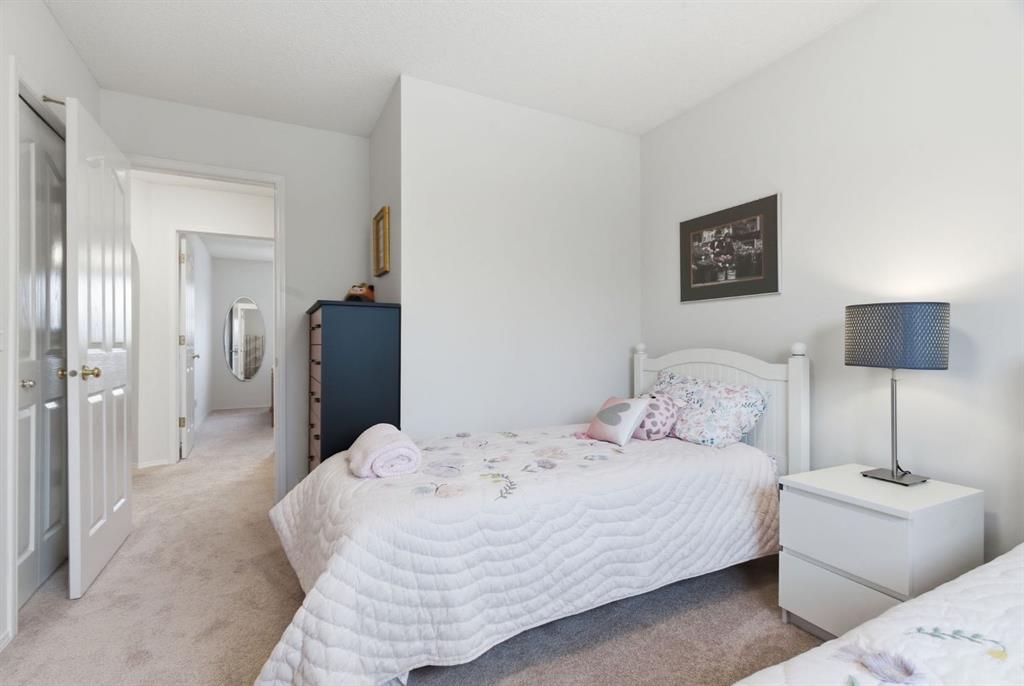 On the market for the first time in the highly sought after family-oriented community of Douglasdale. Situated on a quiet street walking distance to the elementary school, parks, and paths. This immaculate updated home offers 3 bedrooms, 2.5 baths, and a bonus room. The renovated kitchen is a focal point with custom shaker style cabinets, gorgeous stone counters, a timeless subway tile backsplash, stainless steel appliances, a corner granite sil sink looking onto your yard and a pantry for additional storage. Perfect for entertaining this seamlessly connects to the bright dining room with large patio sliders providing direct access to your sunny SOUTH backyard. This is the perfect outdoor sanctuary, with a spacious yard, mature trees, low maintenance composite deck including privacy screen, and an awning creating additional comfort and shade on those Summer days. Adjacent to the dining room is a spacious living room with rich hardwood floors showcasing a fireplace with mantle creating a warm and inviting atmosphere. The powder room is tucked away by the front foyer for privacy and convenience. As you head upstairs you will immediately notice the plush new carpet. This opens to the central bonus room. The perfect space to unwind with family watching movies or as a hobby room or home office. An archway adding elegance & character leads to the two well sized secondary bedrooms, and 4pc main bath with new cabinets and counters. The expansive primary offers a separate walk in closet and luxurious spa inspired ensuite complete with a large soaker tub, and separate shower. This level is complete with a convenient level laundry room. This well maintained, freshly painted home, has new designer lights, Hunter Douglas blinds, an attached garage, and the comforts of air conditioning. Douglas Glen is a well-established community with easy access to shopping, restaurants, the Douglas Dale Golf Course, parks, tennis courts, and scenic walking and biking paths connecting to the Bow River pathway system and Fish Creek Park. With quick access to Deerfoot Trail, commuting throughout the city is effortless. Pride of ownership is evident throughout—schedule your showing today.