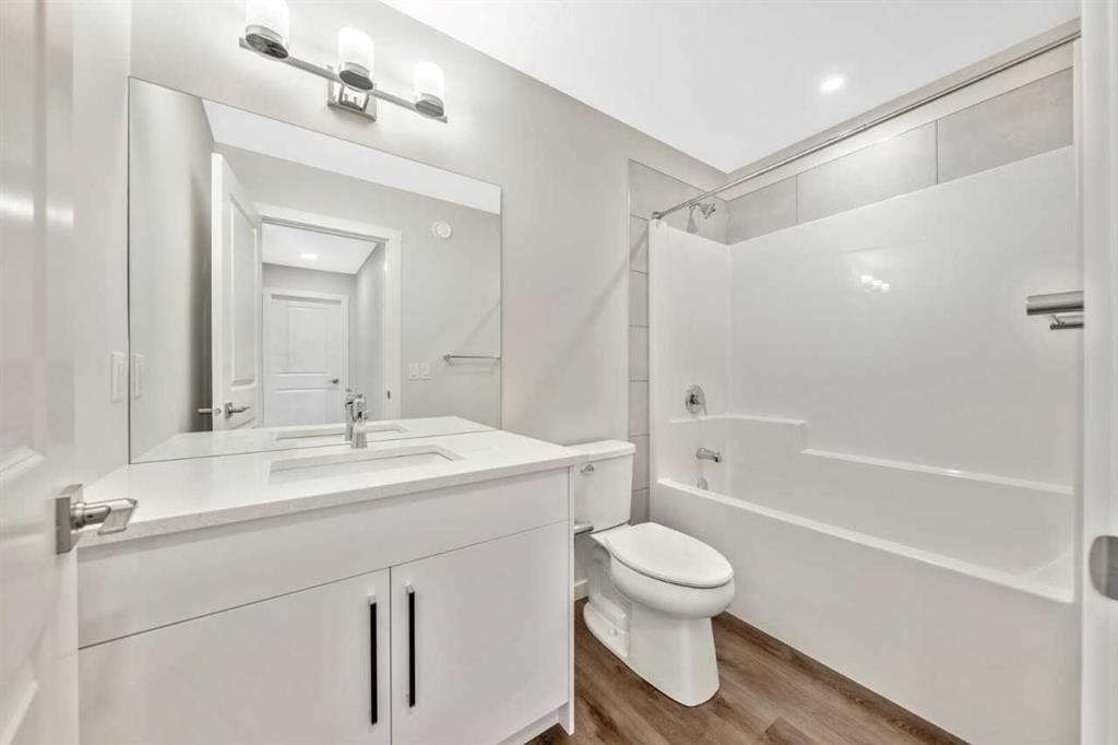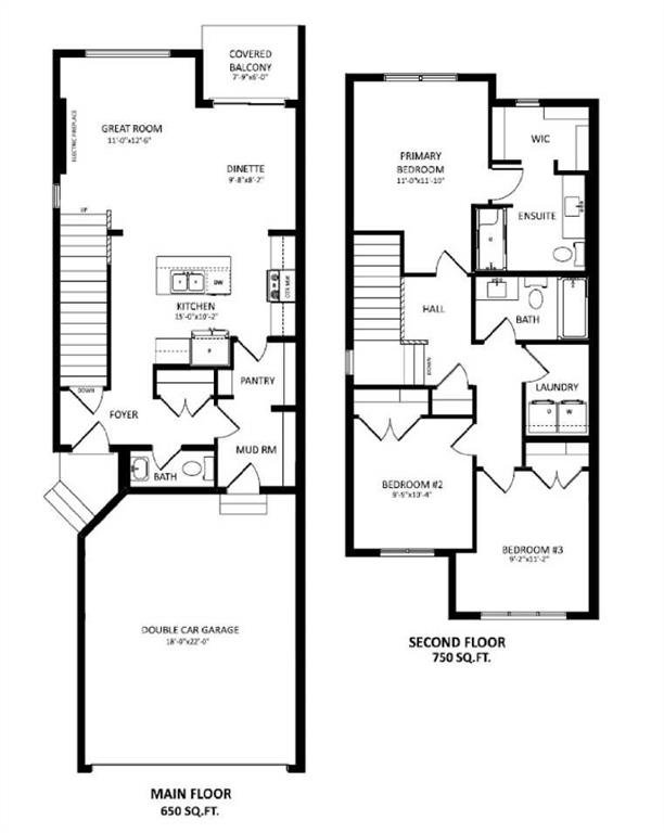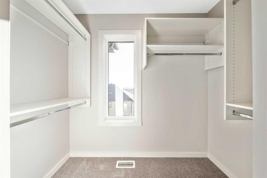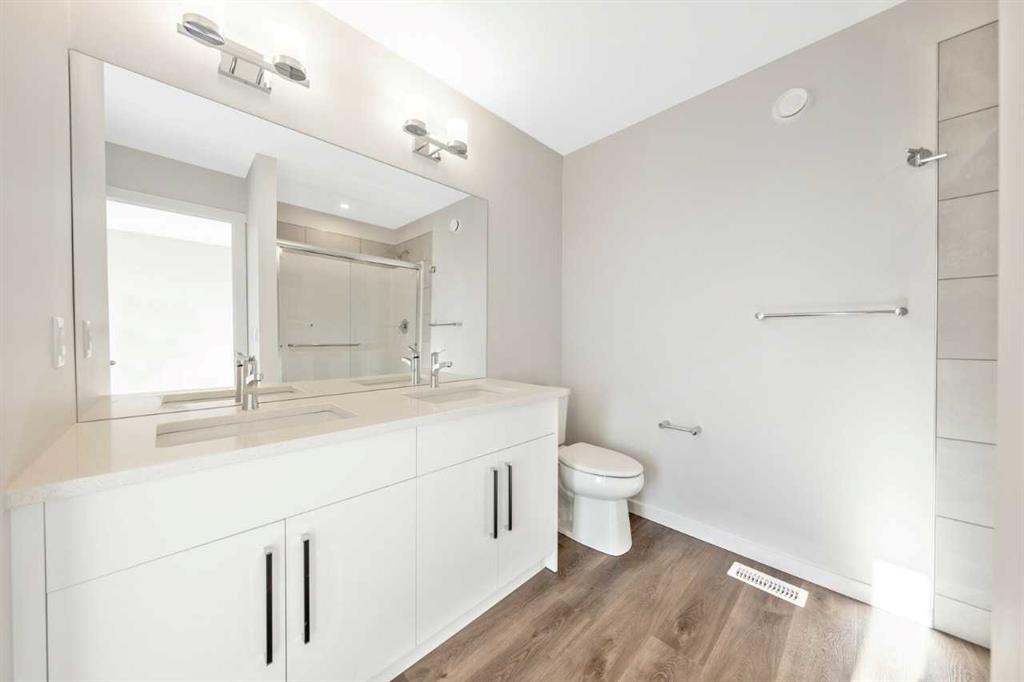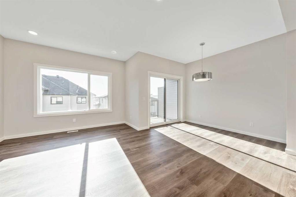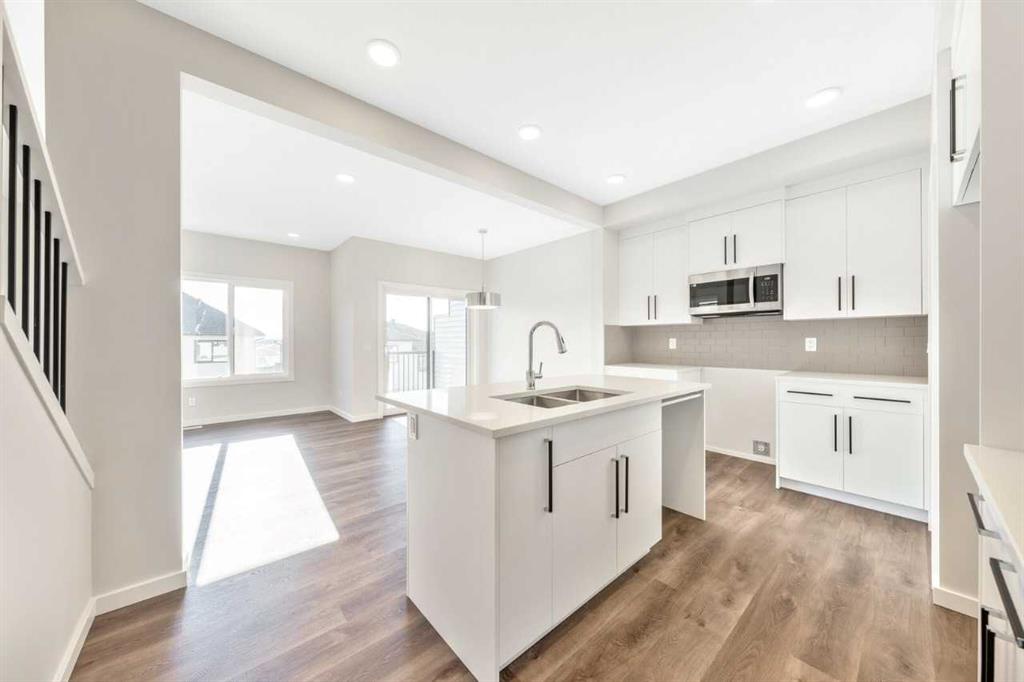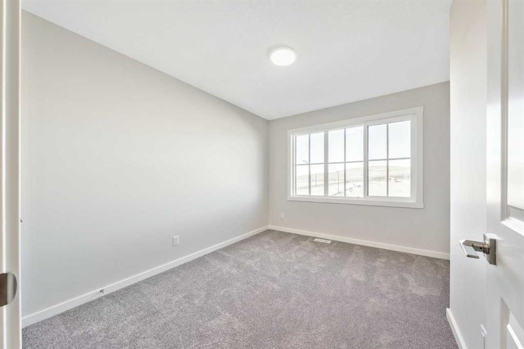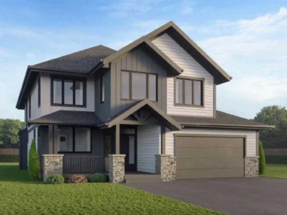This home features a walkout lot with mountain views! The Eden is designed for contemporary living. Entering this home, you are welcomed by a half bath, closet and convenient walk-through mudroom and pantry leading to the central kitchen. The main floor opens up to reveal a spacious great room and dining area, leading to the covered balcony – a perfect retreat to enjoy year round. The second level boasts a primary bedroom with ample space, including an ensuite offering dual sinks and adjacent walk-in closet. Upstairs also offers two secondary rooms, a bathroom, and laundry area. To round out this home, the attached double-car garage provides secure parking and additional storage space. Photos are representative.