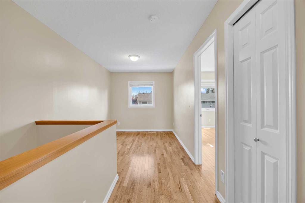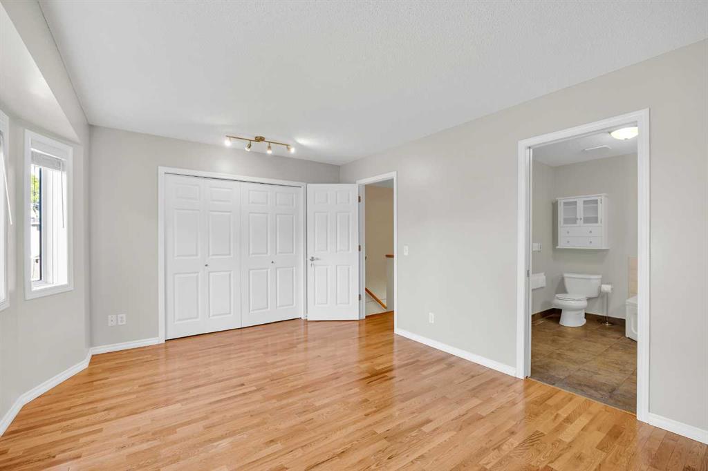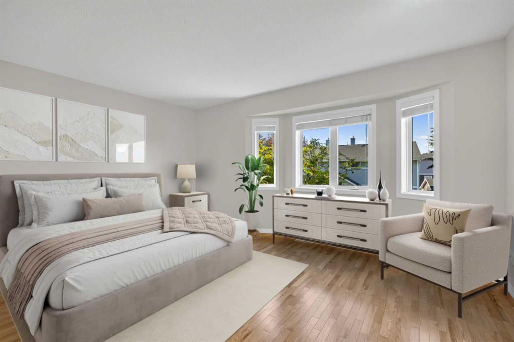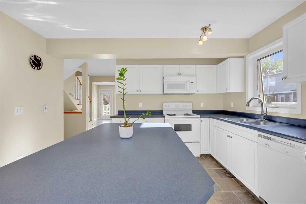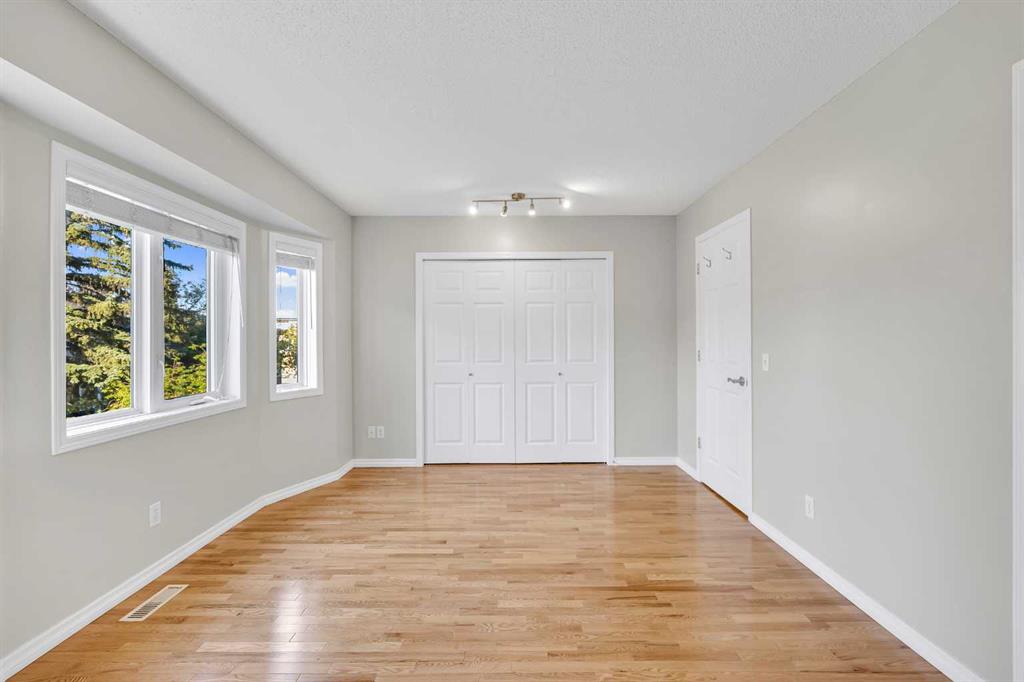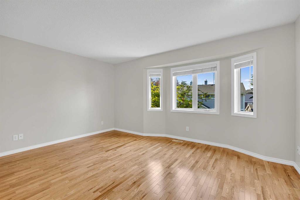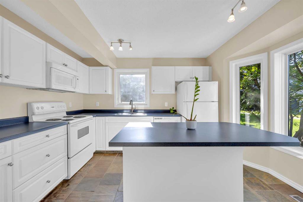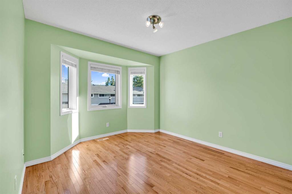 This is home: a south-facing end-unit with almost 1600 sq ft of living space in Regal Park. Backing onto quiet greenspace within the complex, this updated townhouse won’t last long. The gourmet kitchen with heated tile flooring includes a kitchen island that can comfortably sit three, windows that bring in a lot of natural light, and a convenient second entrance. The large open concept living room/dining room combo features hardwood and more sunlight from the south, plus a fireplace to cozy up to and access to your private, large balcony. Finishing the main floor is the laundry area and a two-piece powder room. The upper level hosts the two large bedrooms and an office/den space. The primary bedroom has a walk-in closet and four-piece ensuite – a warm space with a separate shower and soaker tub, and heated flooring. A double tandem garage with a separate utility room make use of every square foot. Well cared for by the owner of 13 years, this gem is in a quiet part of the complex, close to all amenities: dog parks, schools, pools, hockey rinks, tennis courts, transit, bike paths, and quick access to downtown Calgary. Regal Park is one of the most desirable inner city locations. Book your viewing today!