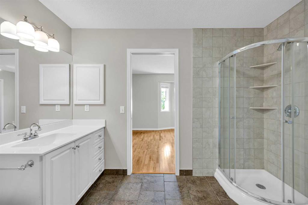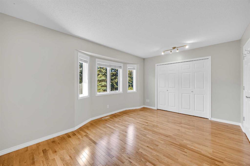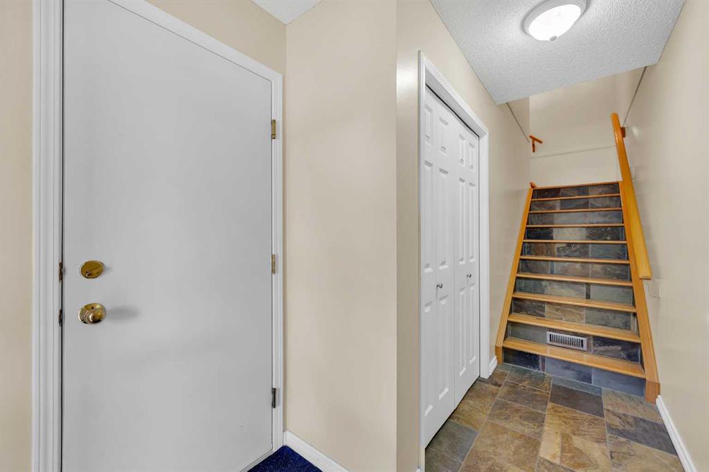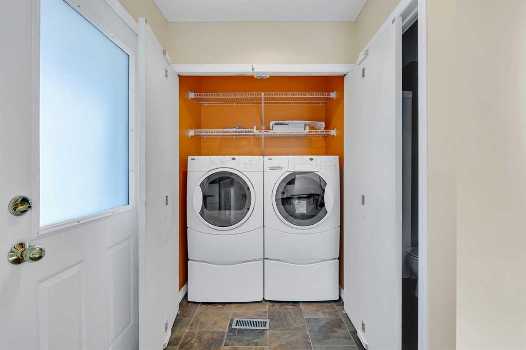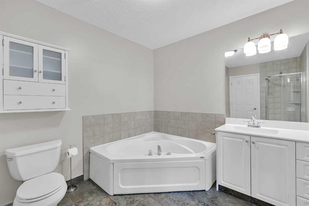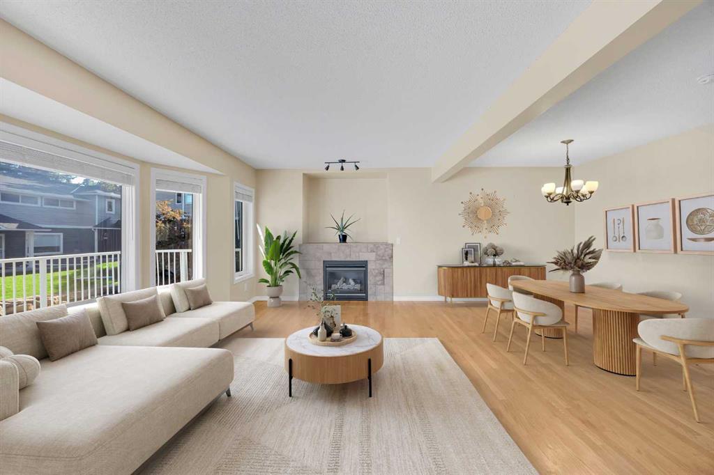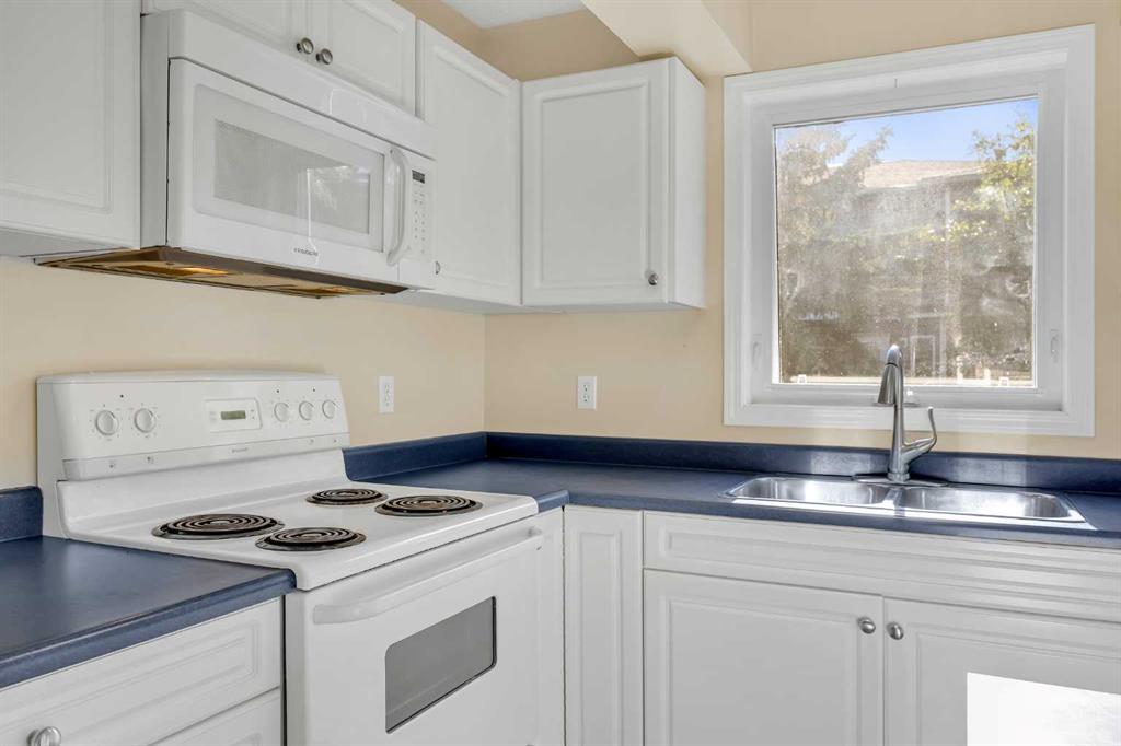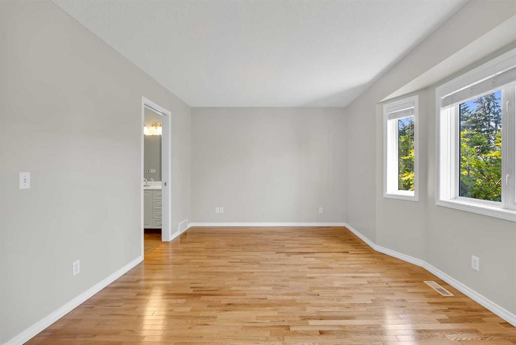 This is home: a south-facing end-unit with almost 1600 sq ft of living space in Regal Park. Backing onto quiet greenspace within the complex, this updated townhouse won’t last long. The gourmet kitchen with heated tile flooring includes a kitchen island that can comfortably sit three, windows that bring in a lot of natural light, and a convenient second entrance. The large open concept living room/dining room combo features hardwood and more sunlight from the south, plus a fireplace to cozy up to and access to your private, large balcony. Finishing the main floor is the laundry area and a two-piece powder room. The upper level hosts the two large bedrooms and an office/den space. The primary bedroom has a walk-in closet and four-piece ensuite – a warm space with a separate shower and soaker tub, and heated flooring. A double tandem garage with a separate utility room make use of every square foot. Well cared for by the owner of 13 years, this gem is in a quiet part of the complex, close to all amenities: dog parks, schools, pools, hockey rinks, tennis courts, transit, bike paths, and quick access to downtown Calgary. Regal Park is one of the most desirable inner city locations. Book your viewing today!