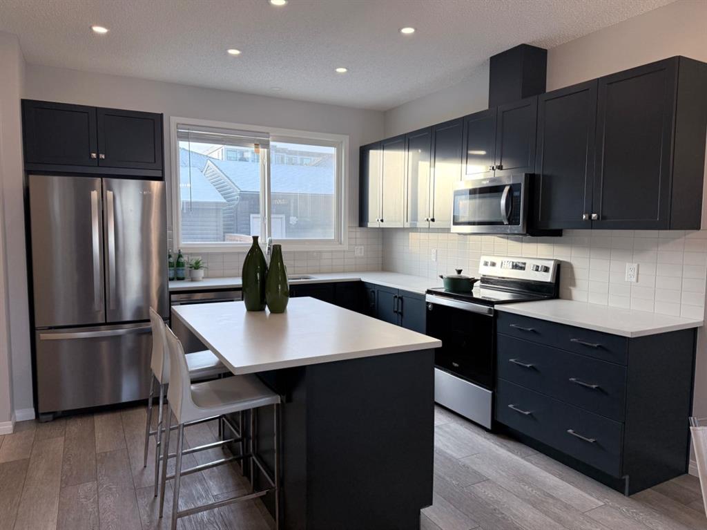 ***OPEN HOUSE Saturday & Sunday Jan 24 & 25 12:00-3:00*****Brand new quartz counters in kitchen***Nestled along the scenic Bow River Valley, Wolf Willow is one of Calgary’s most beautiful and desirable new communities. This lovely detached home features 3 bedrooms, 2.5 bathrooms, and a bright, open floor plan designed for modern living. The main level offers light-coloured flooring that pairs perfectly with the striking blue kitchen cabinets, giving the space a fresh and inviting feel. Enjoy the convenience of a private deck, fully fenced yard, and detached garage—everything is ready for you to move in and make it your own.