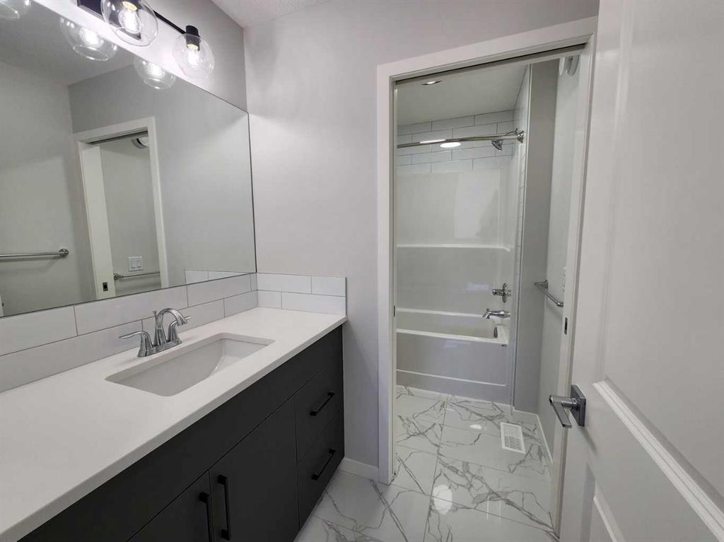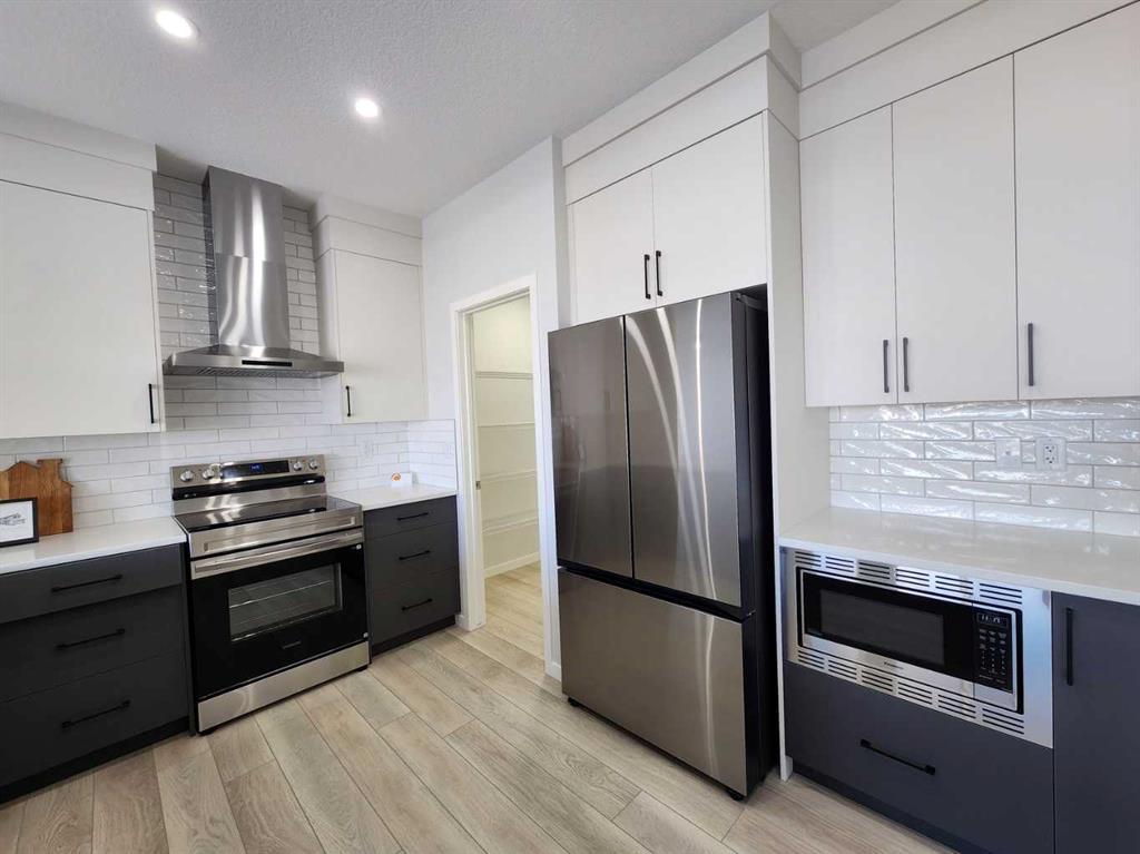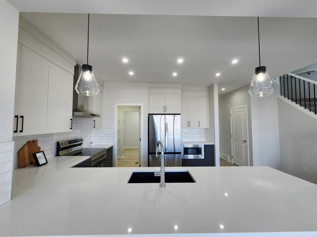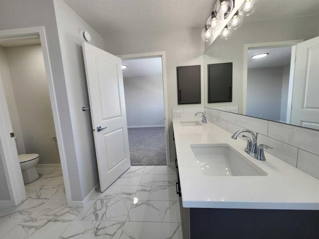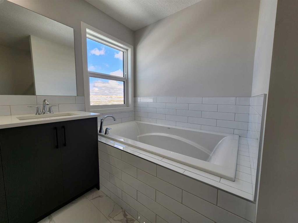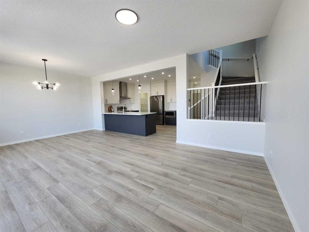 View, View, View! Back on the pond, on a conventional lot (not zero lot), and fully upgraded, welcome to this brand new single family home in popular Livingston. It features 2257 sqft, 4 bedroom up plus main floor den, 24×10 full size deck, 9 feet ceiling on the main floor, quartz counter tops in the kitchen and bathrooms, knock down ceiling, wrought iron spindles on the stairs, upgraded stainless steel appliances and chimney hood fan, 2 tone colors full height cabinets, and LVP flooring throughout the main floor. Upper floor with 4 bedrooms, large master bedroom with beautiful view, ensuite with double vanity sinks, separated shower and bathtub, and large walk in closet, bright and large bonus room with big window, functional compartment main bathroom, and laundry room with window. Main floor with large and bright living room, large sliding doors and glass panels, open kitchen, spacious dining area, and large walk through pantry. Basement with separated entrance has 2 windows and future bathroom rough it. It backs on the pond, closes to playground, future school, shopping, and easy access to major roads. **364 Herron Landing NE **