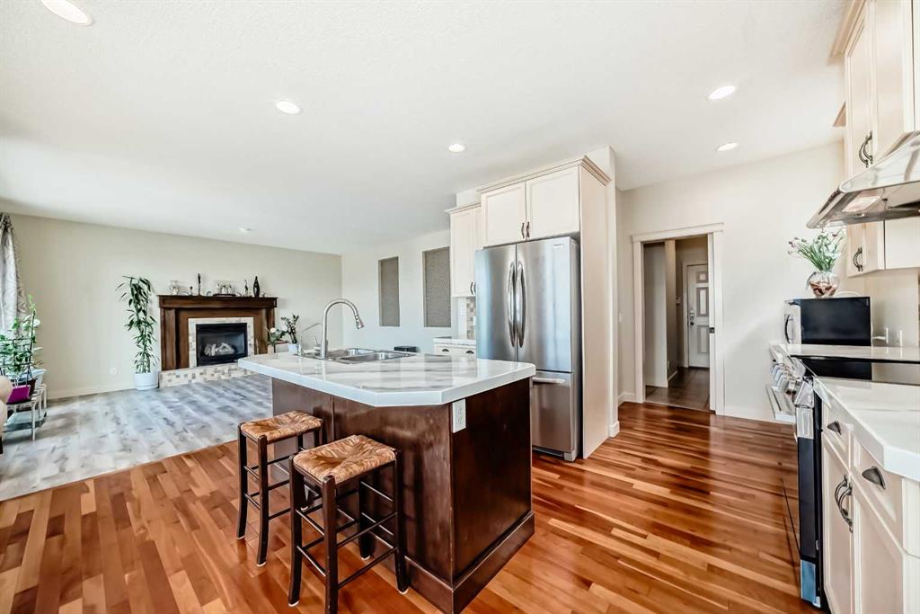 …OPEN HOUSE… NOVEMBER 9TH… SUNDAY….FROM 2:00PM-4:00PM…..Location, location, location! This beautiful home is close to all amenities including country hills town center with theatre, restaurants, grocery stores and more. Public transportation is nearby and there is quick access to Deerfoot trail and Stoney trail, making it easy to get anywhere in the city. This upgraded and immaculate home offers an open concept from the kitchen to the dining and living room. The main level features hardwood and vinyl plank flooring. The kitchen is bright with light colored cabinets, stainless steel appliances, a large pantry, plenty of counter space, filtration system in the kitchen, and a large island with an eating bar. The dining area opens to a spacious south-facing deck built with composite materials. The living room is welcoming and warm with a gas fireplace. The main floor also offers a large foyer with excellent closet space, a half bath, and laundry off the mudroom that leads to the fully insulated and drywalled double garage. Upstairs you will find three generous bedrooms including a large master bedroom with a walk-in closet and four piece ensuite featuring a corner tub and separate shower. The other two bedrooms are a good size and are separated from a very spacious bonus room. The walkout basement is fully developed with a huge rec room, a wet bar, and an electric fireplace. There is also a spa-like three piece bathroom and an additional good sized bedroom. From here you can step out to the covered patio and enjoy the fully landscaped and fenced yard. Added upgrades include 9 ft ceiling throughout the main and upper level, central air, a clay tile roof, newer windows, newer siding, and a hot water tank replaced in 2023. There are also custom shutters on all the windows in the basement. This home is move-in ready with incredible value in a sought-after location. don’t miss it.
