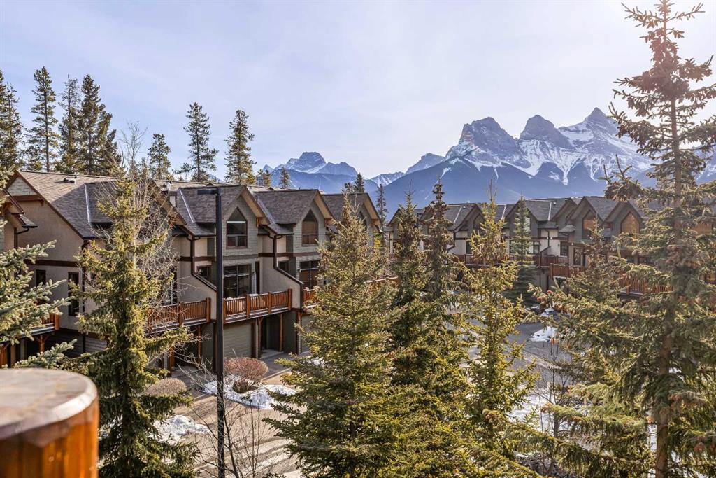 Stunning Corner-Unit 3-Bedroom Townhouse with an Amazing View and just under 2200 Sqft total space! — Canmore Living at Its Finest! Located in the heart of Canmore, this exceptional corner unit delivers the privacy and extra natural light buyers love, along with sweeping, mountain vistas of the iconic Three Sisters. With south-facing exposure for all-day sun, this home is designed to showcase the view from multiple angles and outdoor spaces.