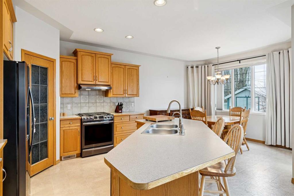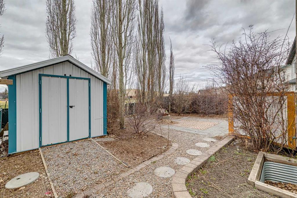 The well maintained home is located close to schools, shopping, and the river walking paths. The main floor features 9-foot ceilings, large windows for plenty of natural light, and a convenient main floor laundry. The kitchen is equipped with newer black stainless steel appliances, including a gas stove, over height cabinets, and lots of counter space. The home backs onto a schoolyard and greenspace providing open views, with a west-facing backyard to enjoy afternoon and evening sun. Step outside to a back deck, and included storage shed. Upstairs and living spaces are complemented by a partially finished basement, offering flexibility for future development or additional living space. Additional features include a reverse osmosis water system, water softener, and a double attached heated garage. The roof was replaced approximately 10 years ago. A solid home with a great location.