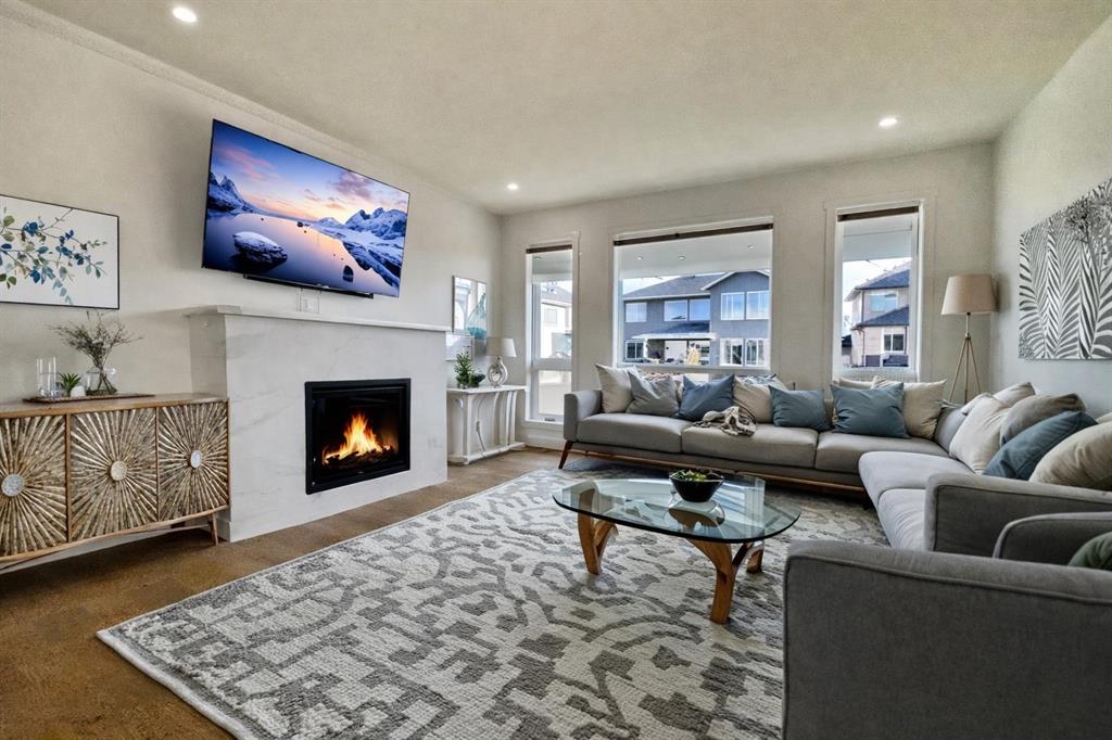 Welcome to this beautiful huge luxurious family home nestled on a quiet cul-de-sac, this stunning property offers OVER 3,200 sq. ft. above grade with 4 BEDROOMS and 3 BATHROOMS on the UPPER LEVEL! A grand, open-to-above entry sets the tone, leading to a main floor with soaring ceilings, gorgeous flooring, and abundant natural light. The chef’s kitchen is unbelievable! Featuring a 6-seat island, quartz counters, soft-close cabinetry, and a walk-through pantry. The bright dining area and spacious living room—with sleek fireplace—flow seamlessly to the deck and expansive pie-shaped backyard. A versatile den/office/formal dining room and powder room complete the main level. Upstairs, the airy BONUS room is perfect for family time. The primary suite boasts a walk-in closet, spa-inspired 5-piece ensuite, and DIRECT access to the laundry room. Three additional bedrooms (including one with ensuite) plus a family bath round out the level. The TRIPLE garage easily fits vehicles and toys. Close to schools (including the new high school), shopping, golf, baseball, and tennis—just 10 minutes to Stoney Trail. This is luxury living, redefined.